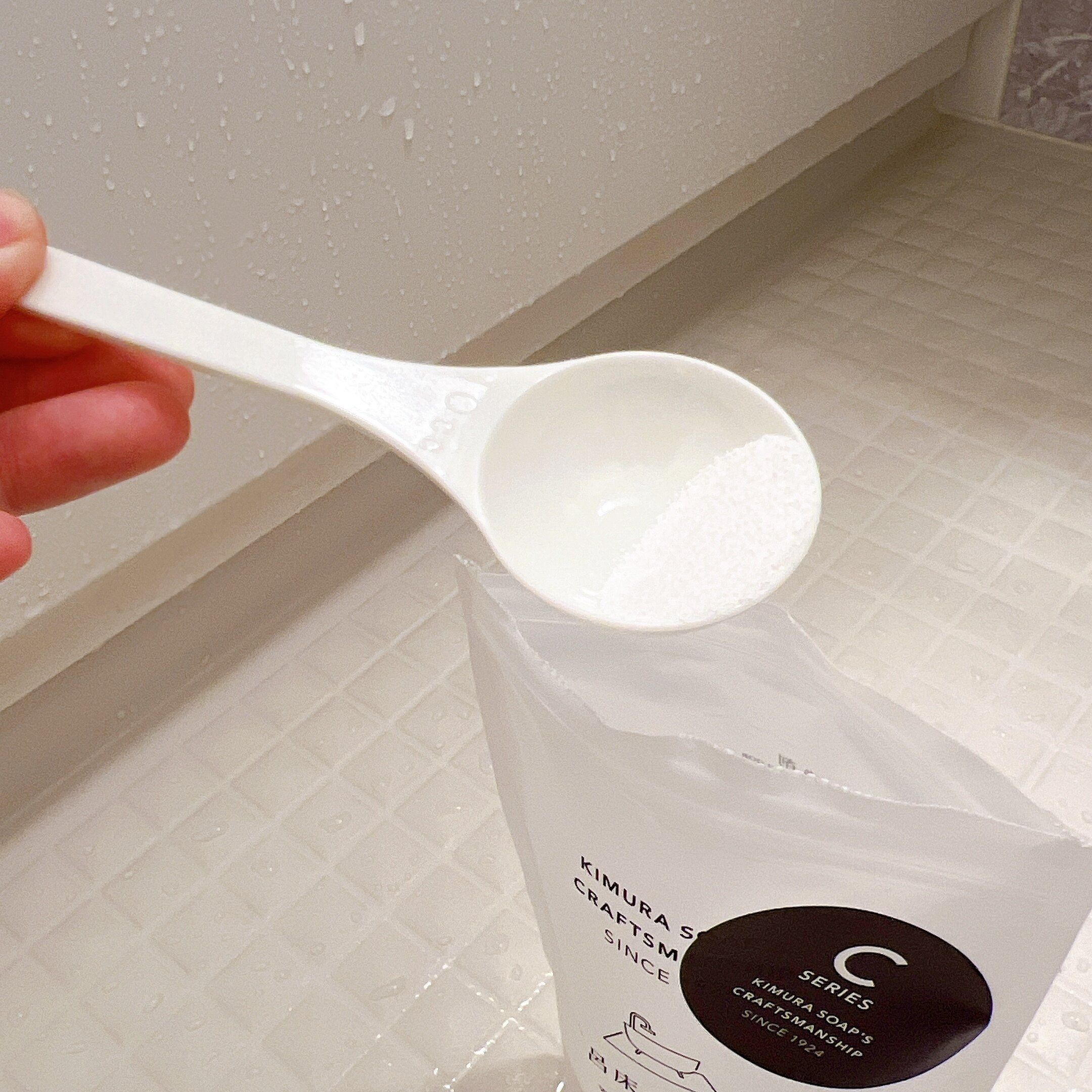 中にはスプーンが入っていて、約4杯使ってを床にパラパラと振りかけます。
