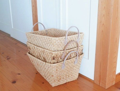 「リビングは家族の持ち物が集まってゴチャつきがち。それをかごで解消!ポンと入れるだけなのでみんな片づけてくれます。子どもはかごから物がはみ出すと自分で処分するように」(tokotokoさん)