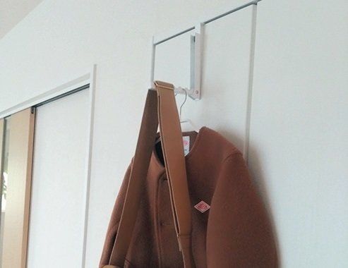 「バッグや洋服はつい床やソファに放置しがち。毎日のことなので、フックを家の至る所につけて一時置き場を確保。仮置き中もジャマにならないし、整って見えて気分よし♪」(mayuさん)