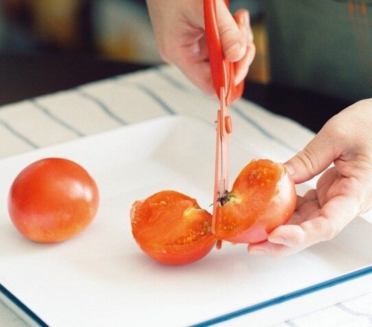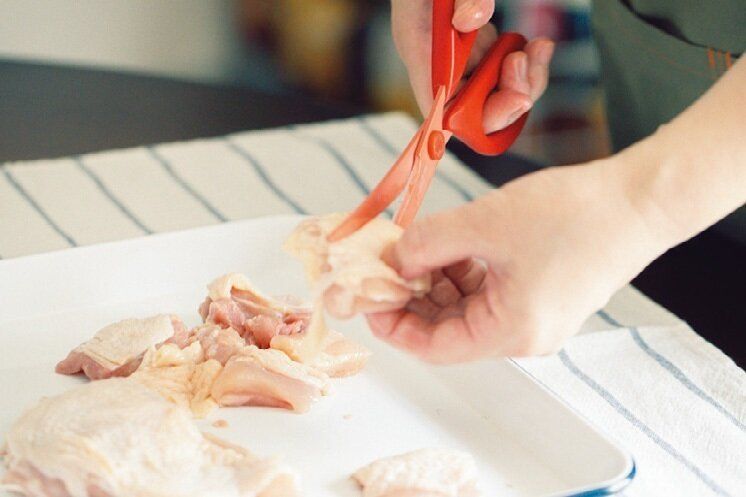 料理家・祐成陽子さんが開発したキッチンバサミで、娘である二葉さんの撮影現場でおすすめされた物。包丁で切りにくい鶏肉やトマト、揚げ物までサクッと切れます。包丁、まな板を用意する手間もないのでストレスゼロ。
