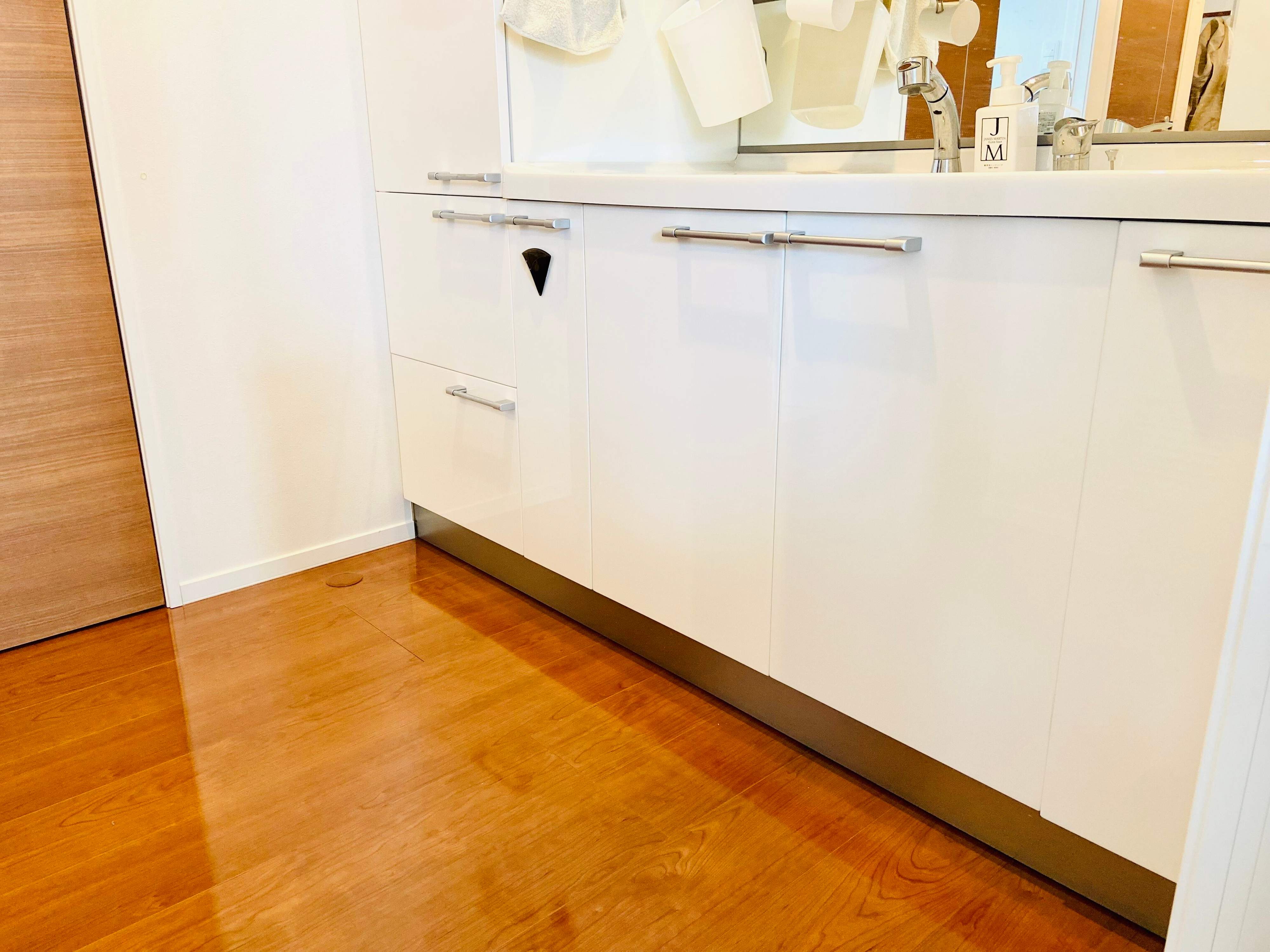 洗面台やトイレ、玄関のマットなどもなくしました。掃除をするときにいちいちよけて掃除をしたり、マットを洗う手間もなくなったのでとても快適です。