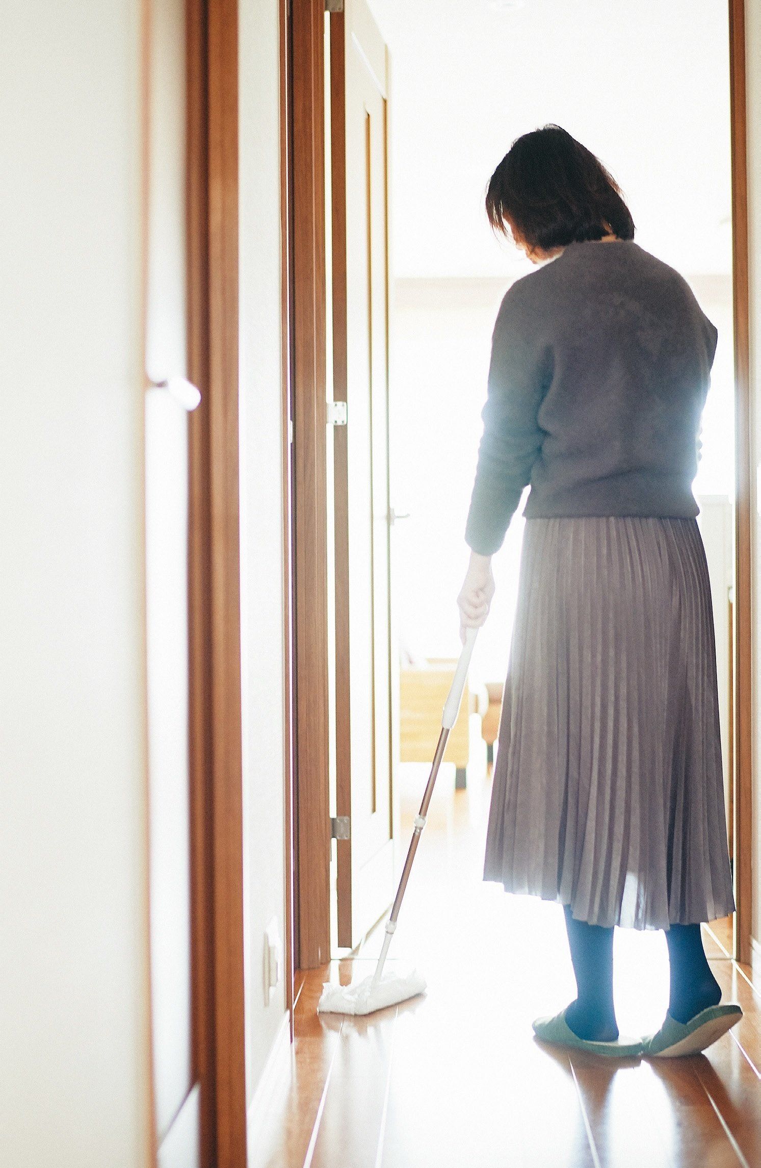 空気中に舞うほこりは、人の動きがなくなると、ゆっくり時間をかけて床に積もるそう。起きてすぐモップをかければ、夜の間に積もったほこりを効率よくキャッチできます。