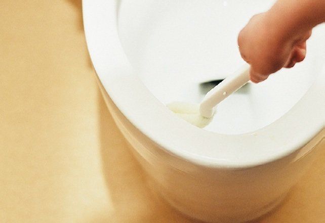 洗剤をかけ、便器内をゴシゴシして終了。スタンプ式の洗剤など、汚れを抑えるコート剤を使うのも効率的。