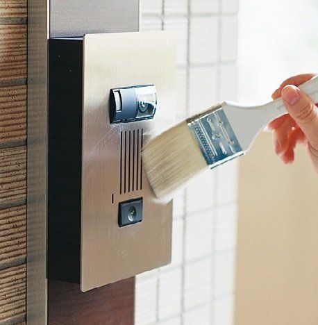 インターホン、玄関ドアなどをきれいにするのは来客前がベストタイミング。100円ショップでも買えるペンキ用の刷毛でササッと払うだけ。