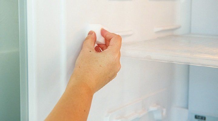 食品を入れる場所なので、できれば洗剤なしですませたい。はずせるパーツはお湯で洗って、から拭き。庫内はお湯でぬらしたメラミンスポンジで磨く。