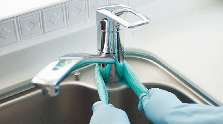 蛇口にAをかけてナイロンタオルで磨く。ナイロンタオルは長さを半分くらいにカットすると力を入れやすくなる。お湯で流して、仕上げのから拭きをする。