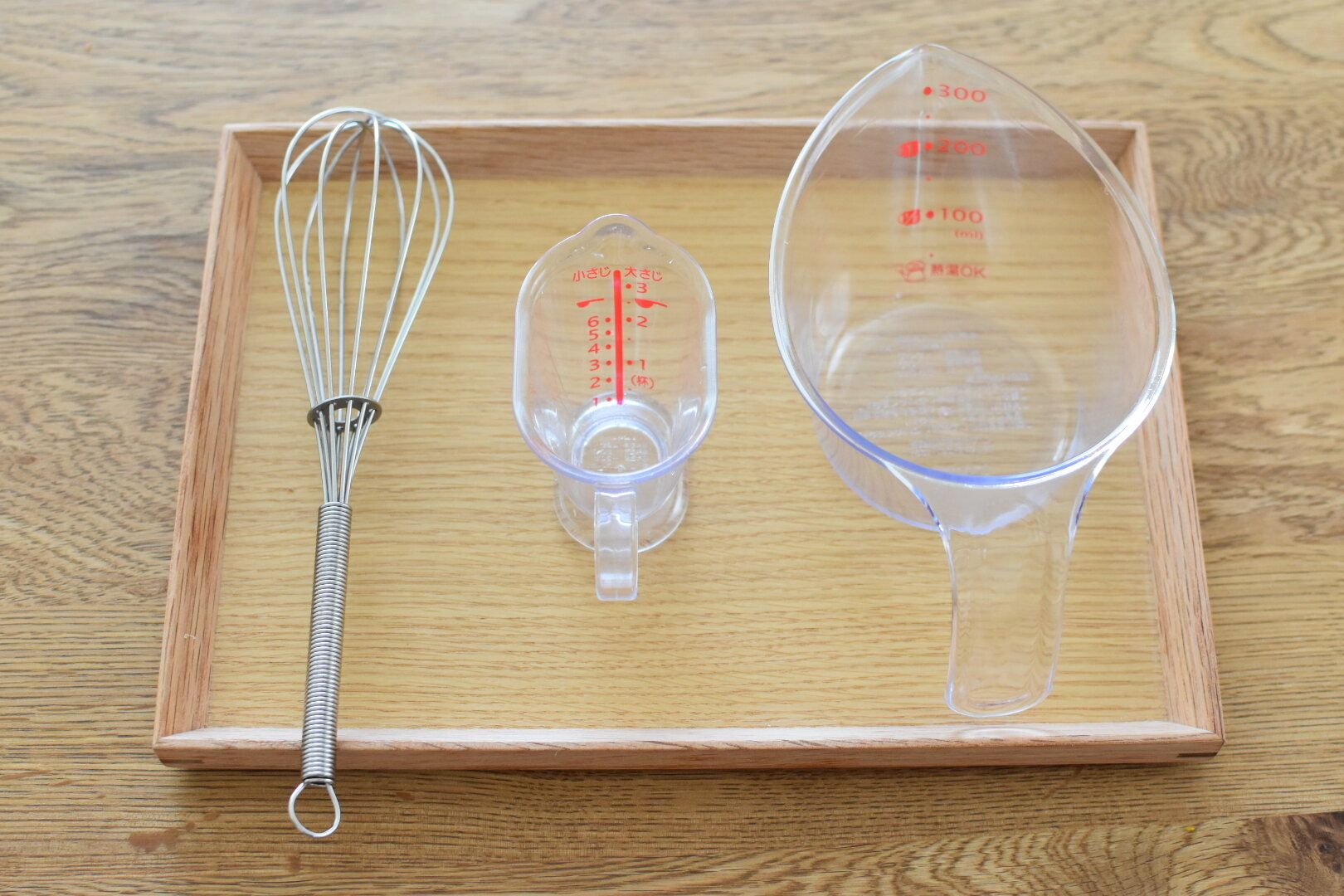 細かい計量にはこちら。50mlまで対応しているので、この2つがあればたいていの料理はカバーできます。