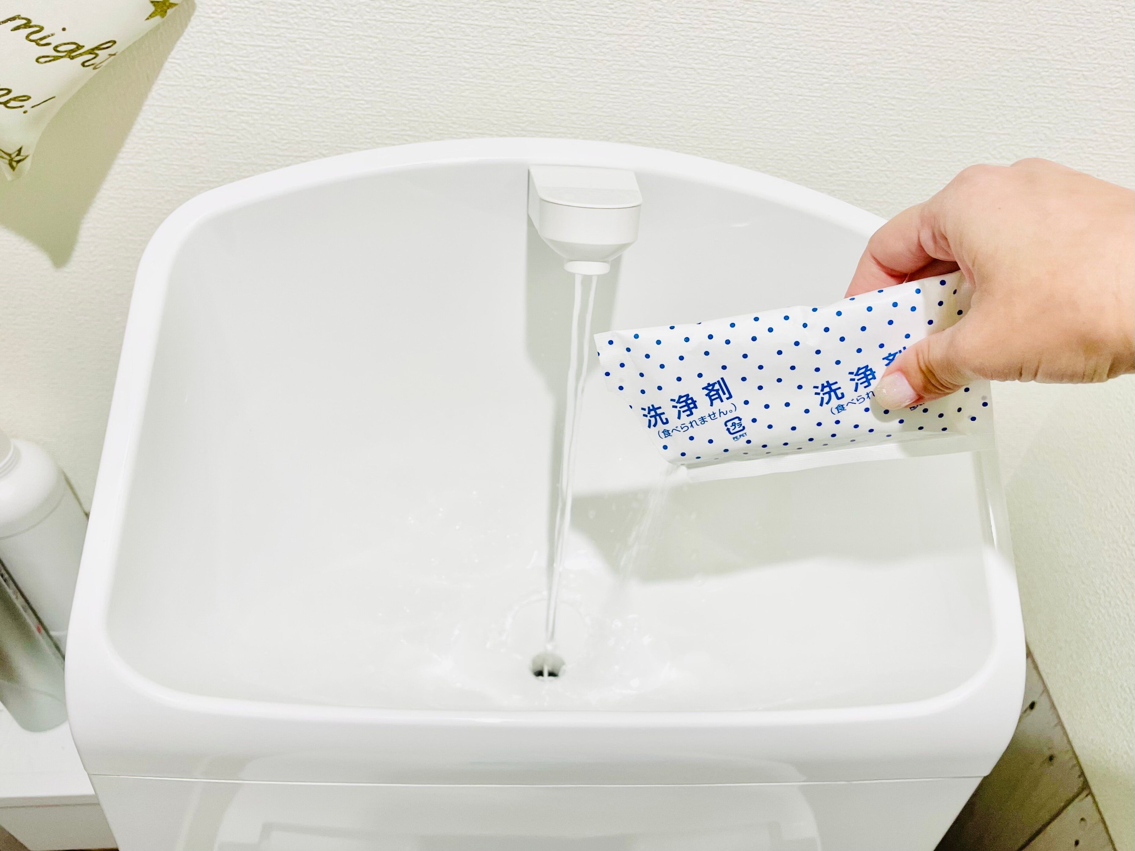 トイレタンクは、月に1度、洗浄剤を入れるだけ。寝ている間にキレイにしてくれるので、労力はゼロ。