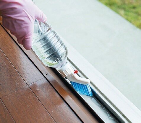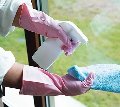 - 3 お掃除手袋に洗剤を吹きつけながら拭く