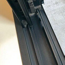 網戸やサッシと同様、下準備として泥汚れを取る。汚れが強いときは下から上へ、古タオルでざっと水拭きを。