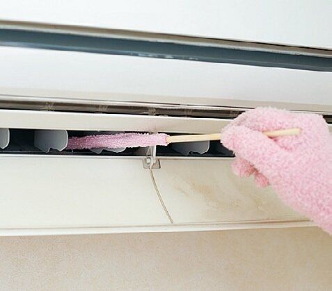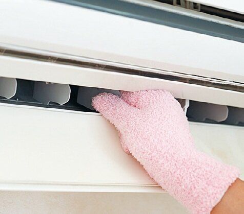 中性洗剤をお掃除手袋につけながら吹き出し口を掃除。細かな所や羽根のつまみ拭きも手袋なら楽。中性洗剤は二度拭き不要。