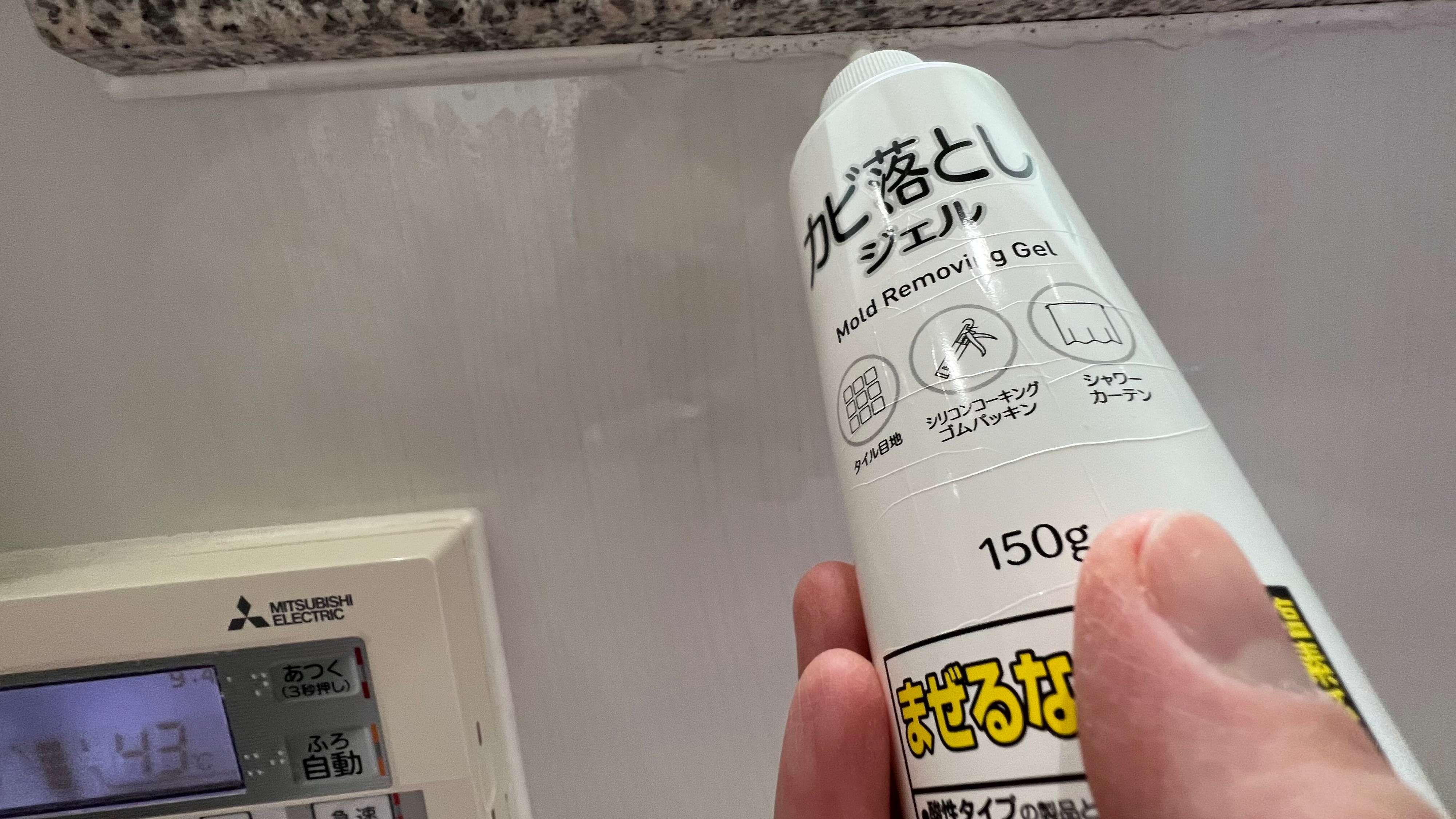 また、塗ったジェルがシャワーで落ちないので、いらない雑巾を使ってこそげ落とす必要があります。少し手間ではありますが、110円でカビが落ちるならばそこまで面倒に感じる必要も無いでしょう。