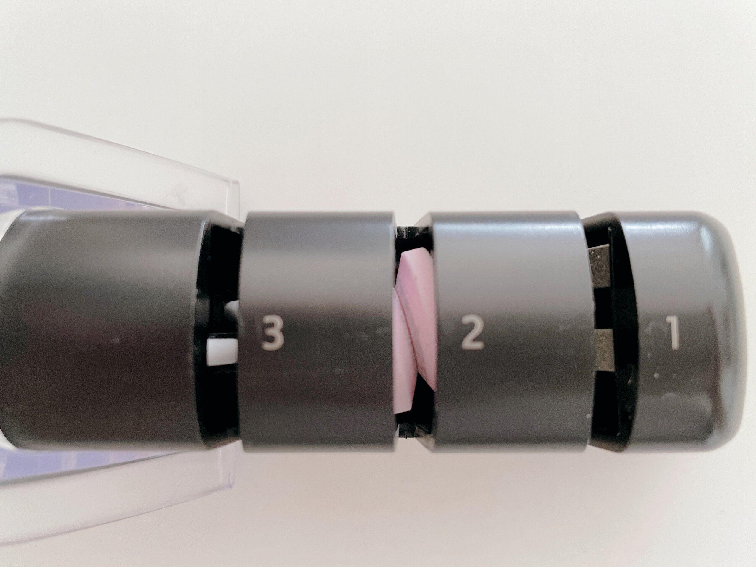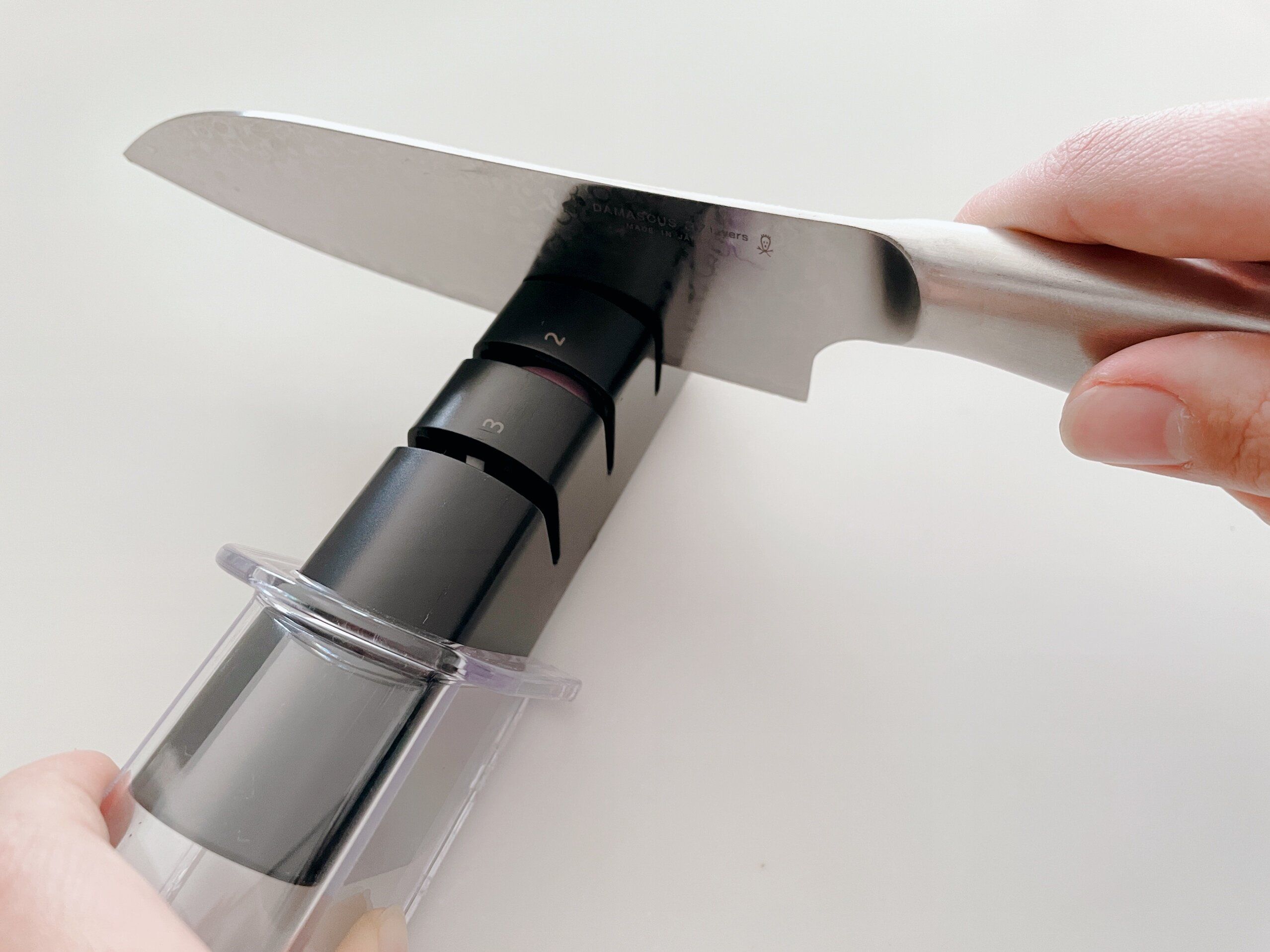 使い方はとっても簡単で、性質の違う3種類の砥石がついているので、数字が書かれた順(1→2→3)に使っていくだけ。