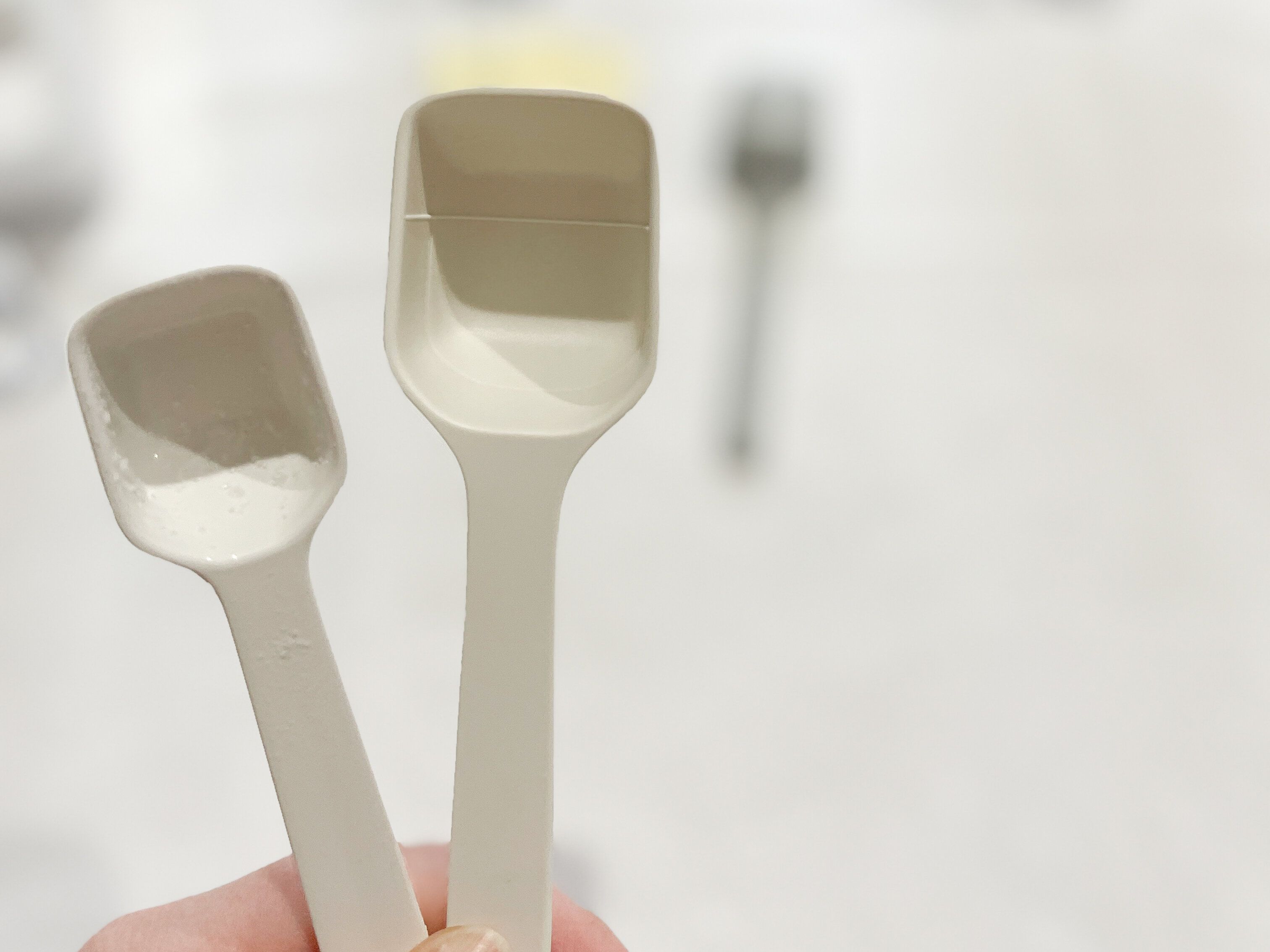 スプーンの中に小さじラインがついており、小さじも大さじも計れます。