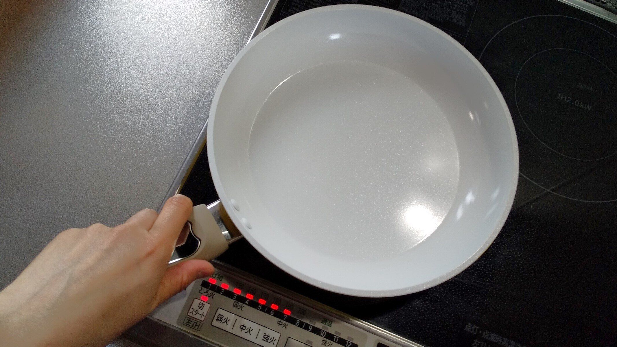 また、「コールドスタート調理」といって、火をつける前に加熱する具材をフライパンに入れてから加熱すると空焚きの心配がありません。(この場合、ノンオイル調理も可)