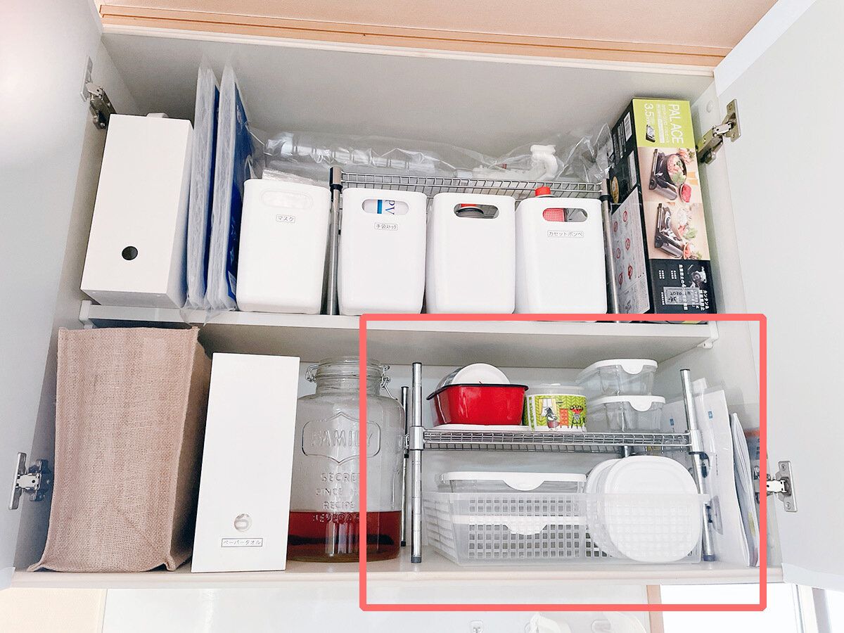 整理したり入れ替えたりして、出し入れしやすい場所にガラス容器の収納場所をつくりました。