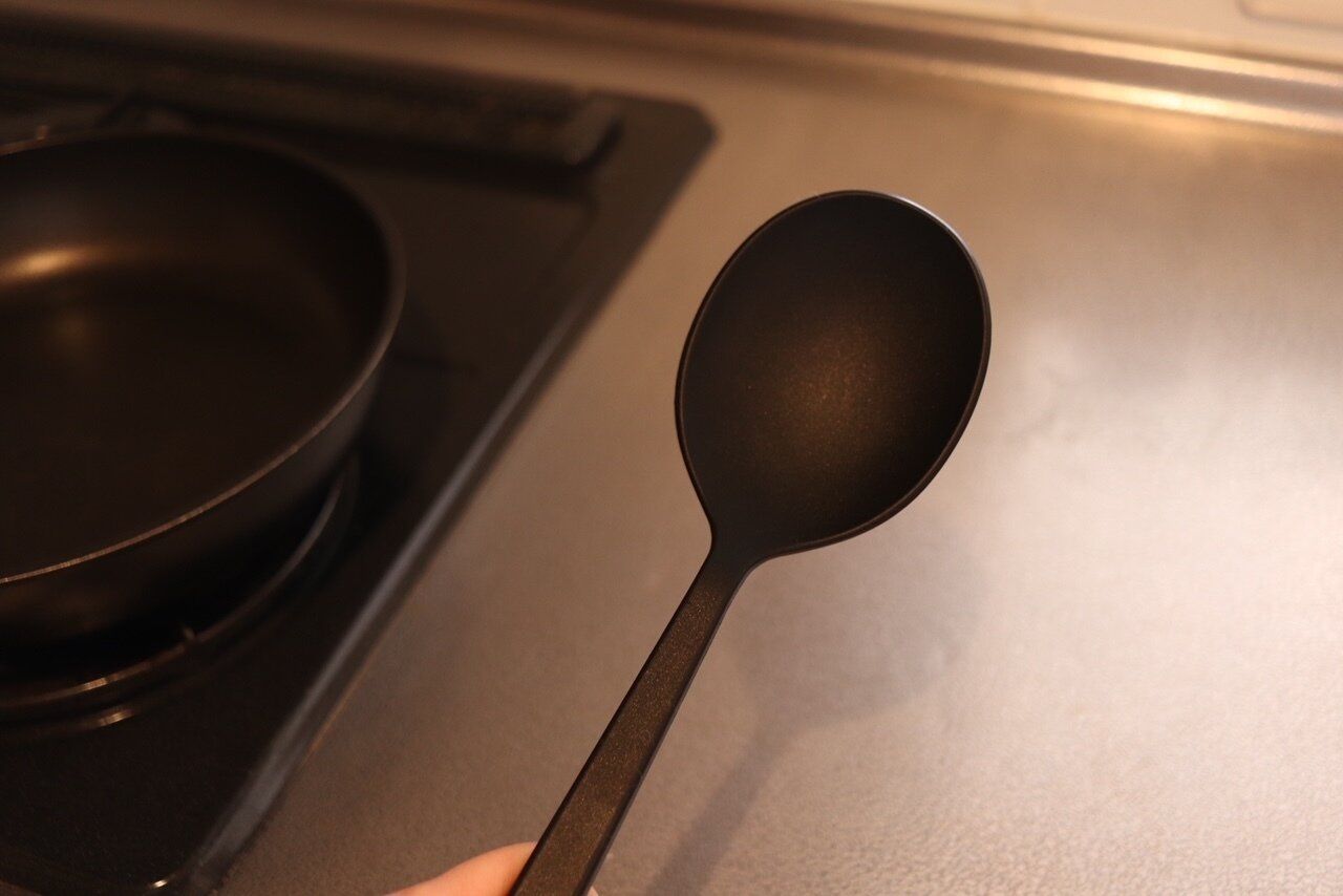 有名な商品なのでご存じのかたも多いかと思います。シリコーン素材の調理スプーンです。こちらのスプーン、何がすごいかというと!これ1本で炒める、すくう、混ぜる、料理を盛りつける、いろんなシーンで大活躍します。私は具だくさんの汁物にも使っております。1本490円(2024年3月現在)で価格もお手ごろ!さらに食洗器で使用可能なのもうれしいポイントですね。