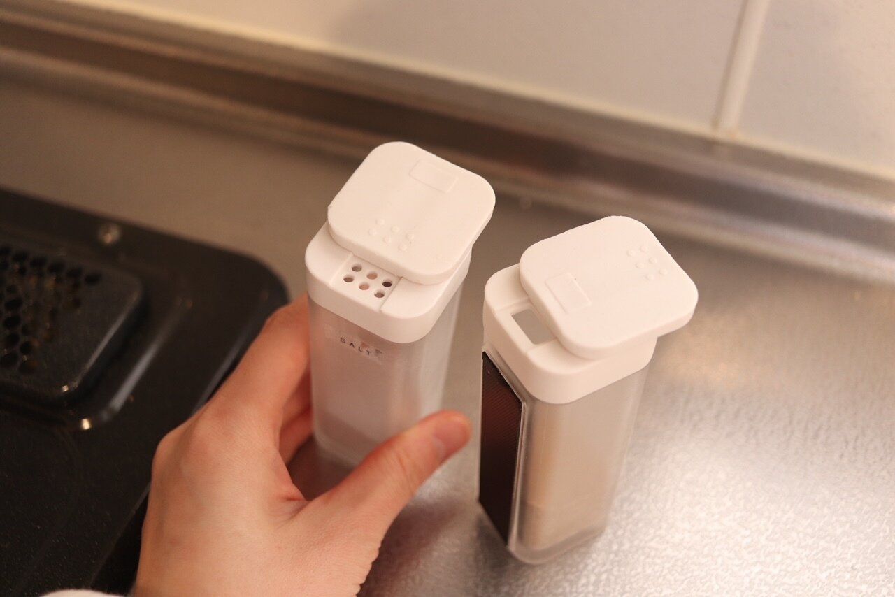 キッチンの壁にマグネットが貼れるかた!ぜひおすすめしたい商品です。そのまま調味料をコンロ近くに出しておくと、調理中の油汚れなどが飛ぶ可能性があり、いちいち拭くのも面倒かと思います…。しかし、こちらのマグネットスパイスボトルは壁に貼りつけられる=浮かすことができるので、掃除がしやすい!もう、これに尽きる!!よく使う塩、こしょう、顆粒だしなど入れておくと、料理がラクになりますよ。そして出し口の穴は2種類の大きさになっており、料理に合わせることができるので、使い勝手抜群!ただし、なんでもかんでも貼ればいいというわけではないので、数を決めて使ってみてください!