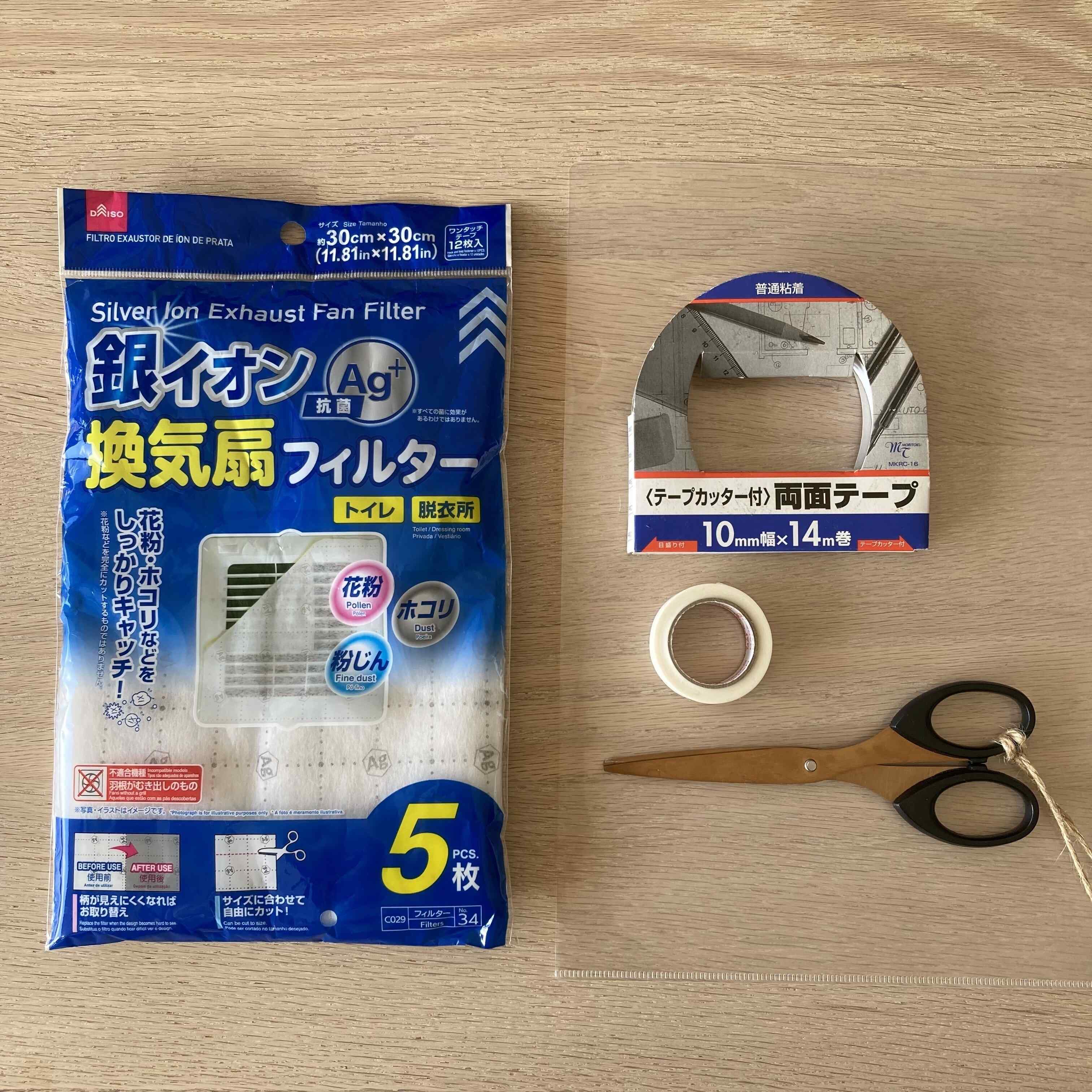 換気扇フィルターはダイソー商品の「銀イオン 抗菌換気扇フィルター」(110円)を愛用しています。