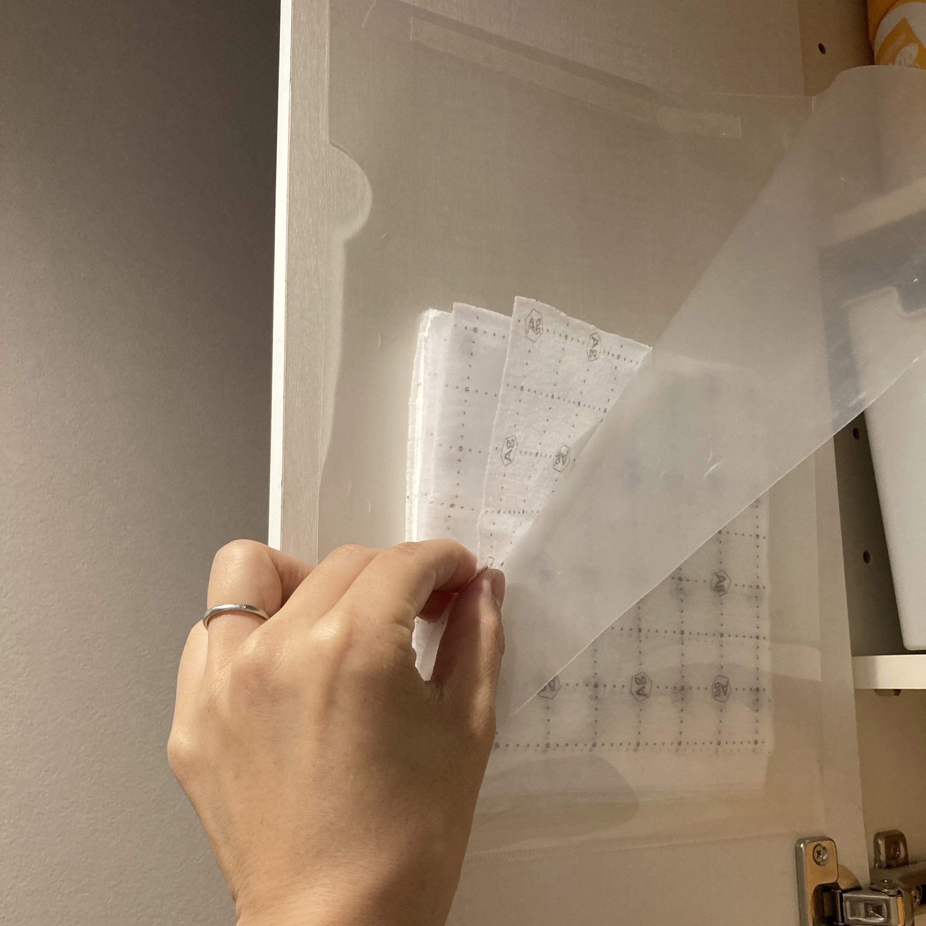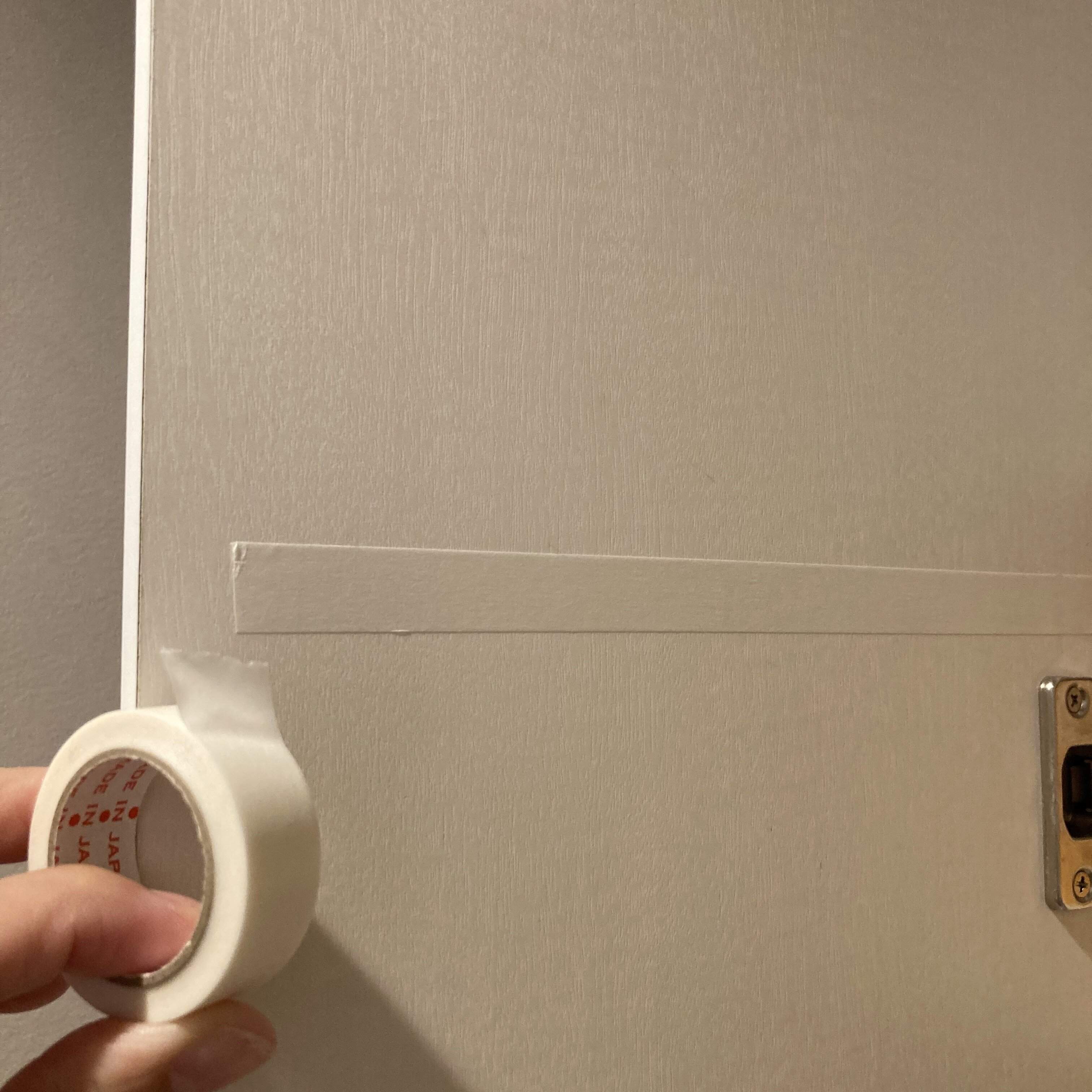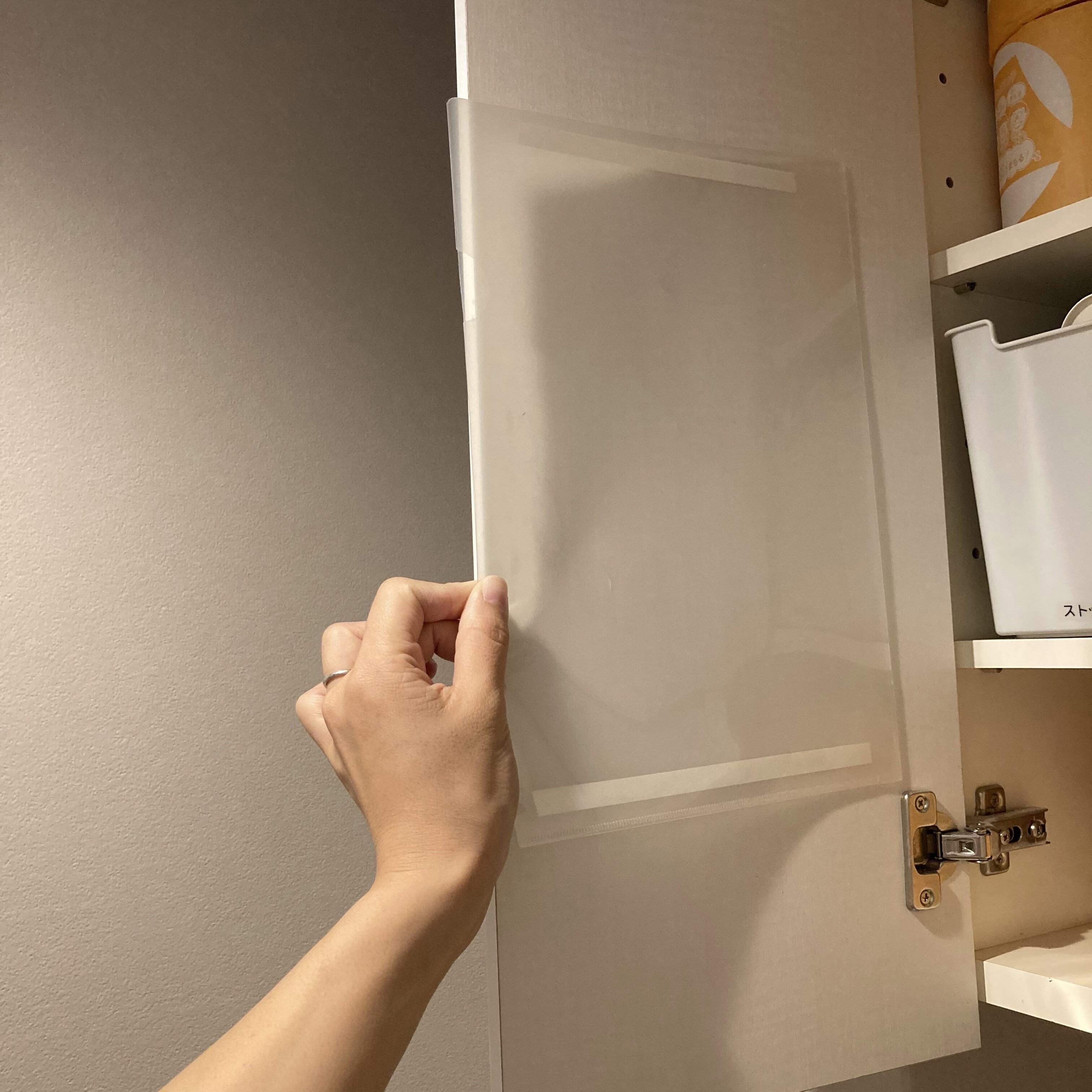 賃貸やシートの剥がれが気になるなどで直接貼りつけられない場合は、両面テープがくる位置にマスキングテープを貼ってからクリアファイルを貼りつけてくださいね。両面テープより太めのマスキングテープにしておくと貼りやすいですよ。