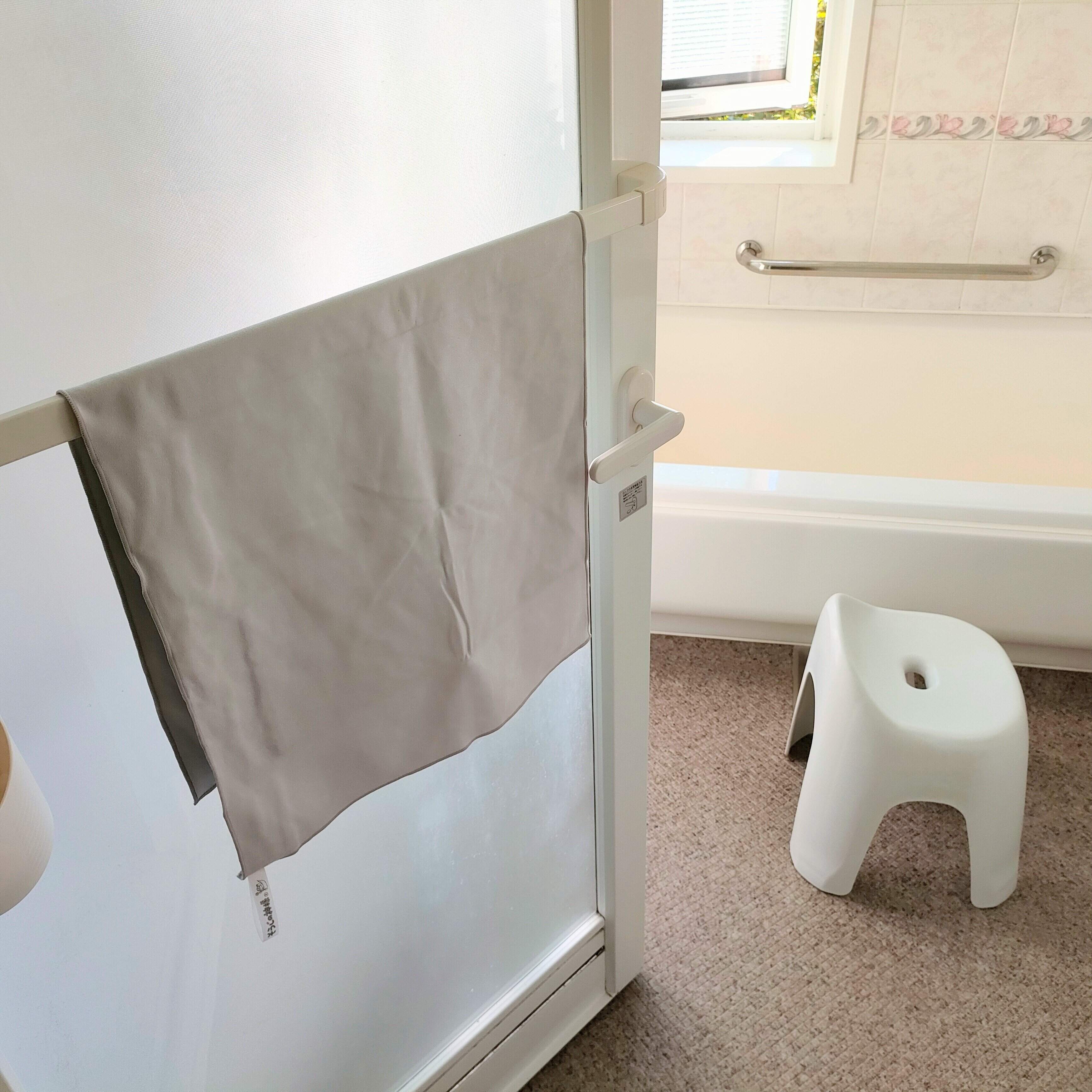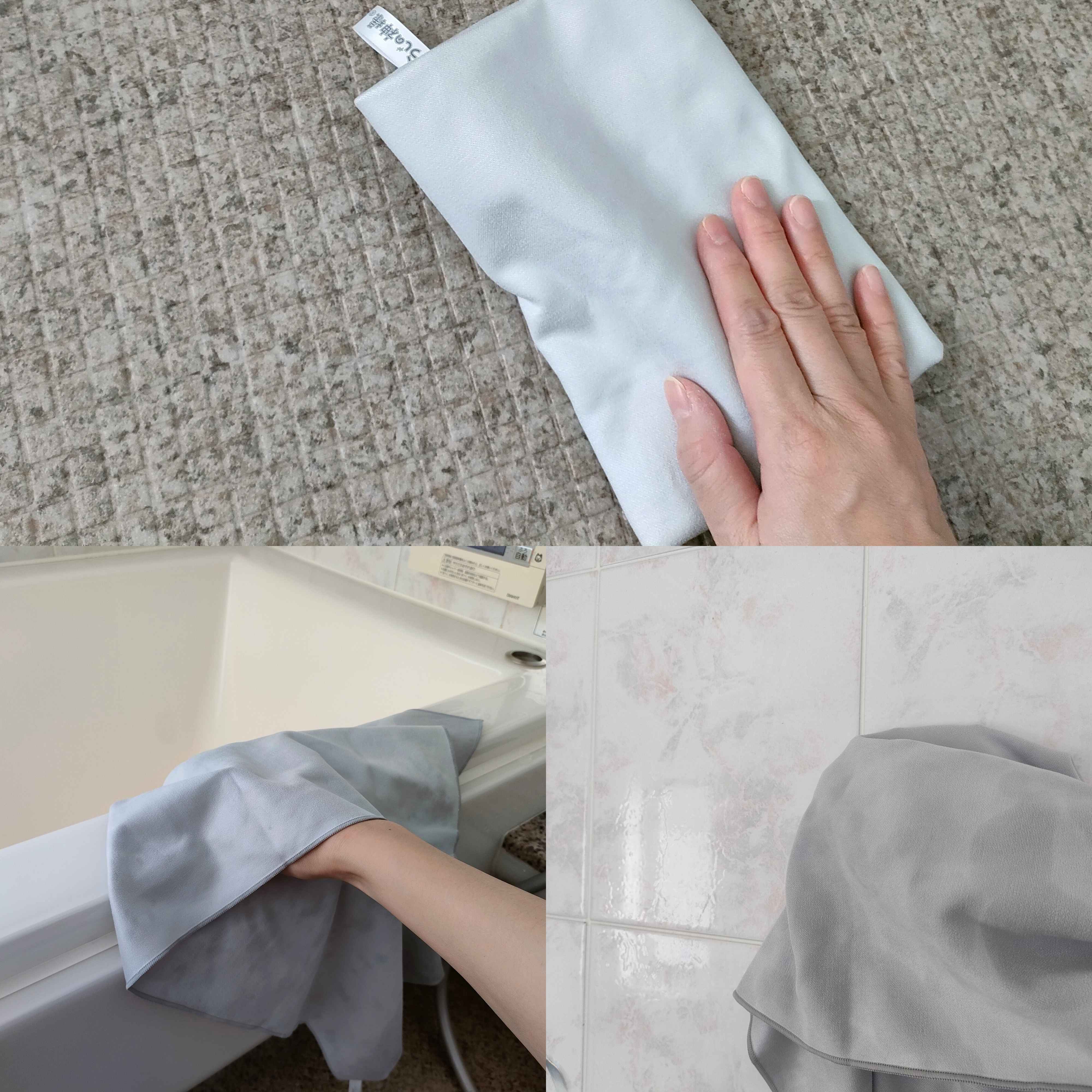 拭き上げプラスちょっとしたお掃除もできる、一石二鳥の「浴室用吸水&拭き上げクロス」。