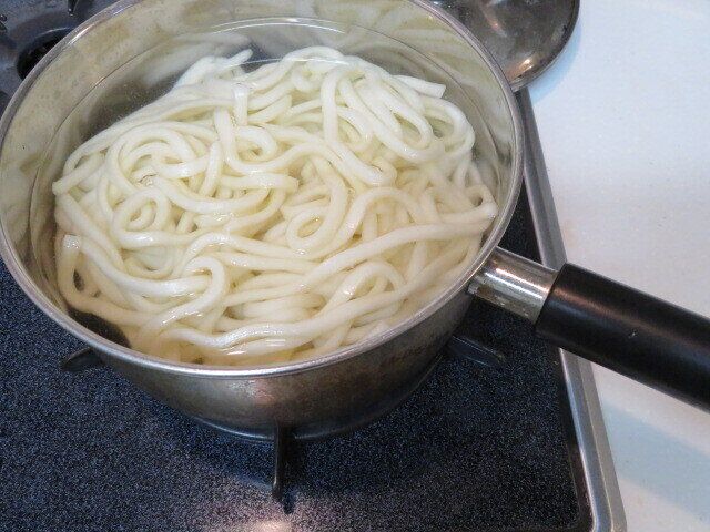 食べ終わった頃にはゆで汁の温度が少し下がっているので、そこでいったんコンロからおろします。