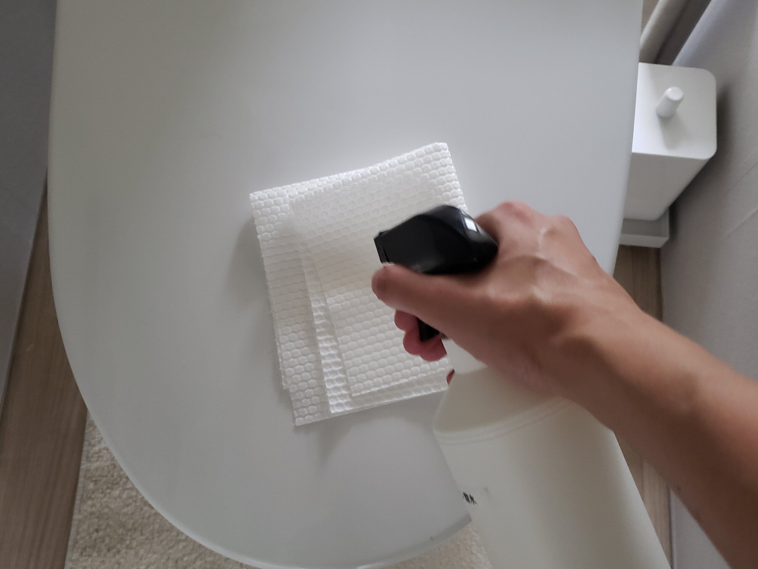 私の掃除の仕方は、洗って使えるペーパータオルにクエン酸水スプレーを吹きかけてから拭いています。
