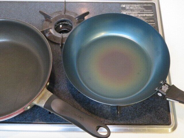 こげつきやすいなどの悪評も気になる中、思い切ってフッ素加工フライパンの使用をやめて切り替えたのです。