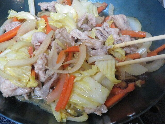 炒め物も大丈夫だろうかと、肉野菜炒めにも挑戦。