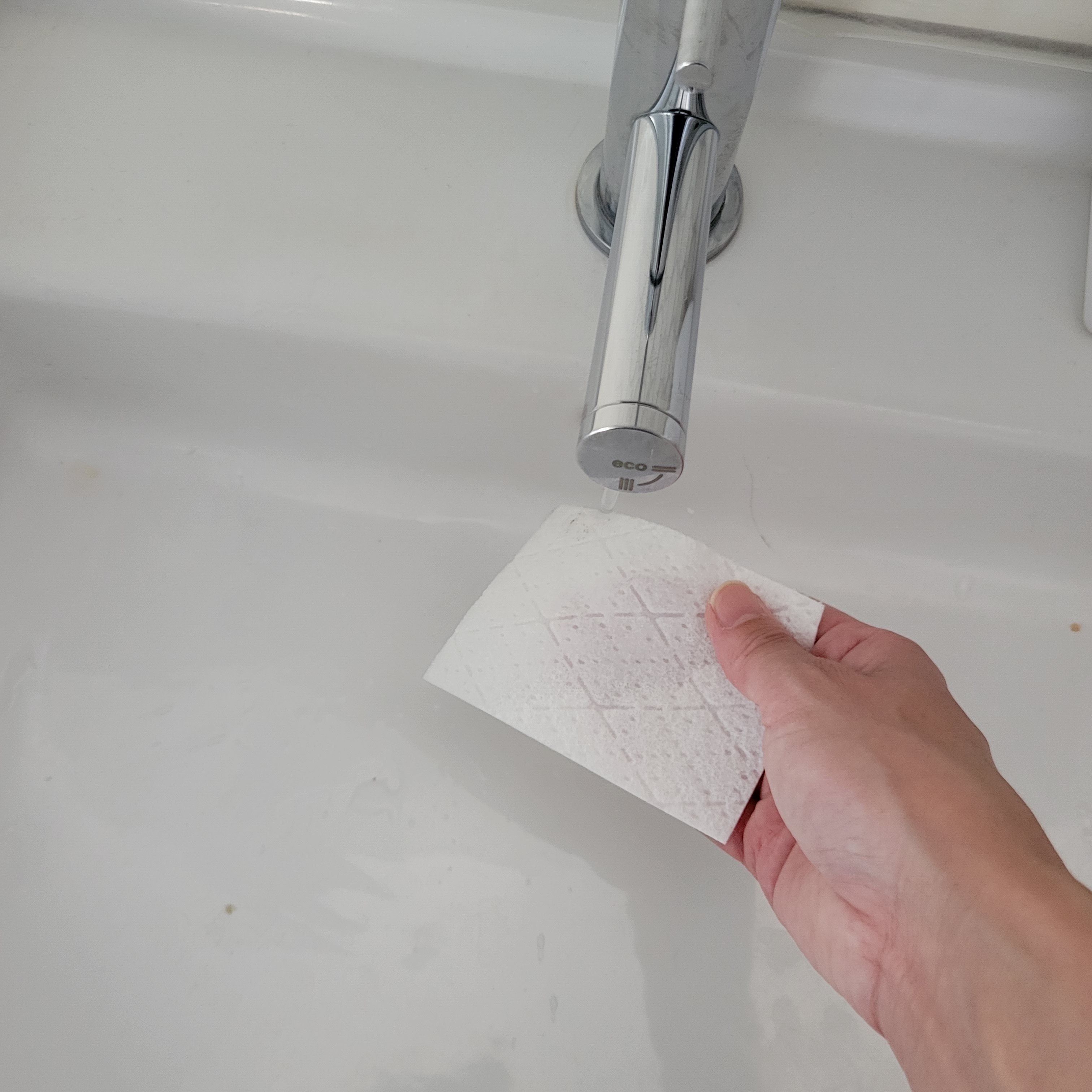 洗面ボウルももちろんピカピカに!このシートはクレンジング成分入り。おかげでツルピカになります!