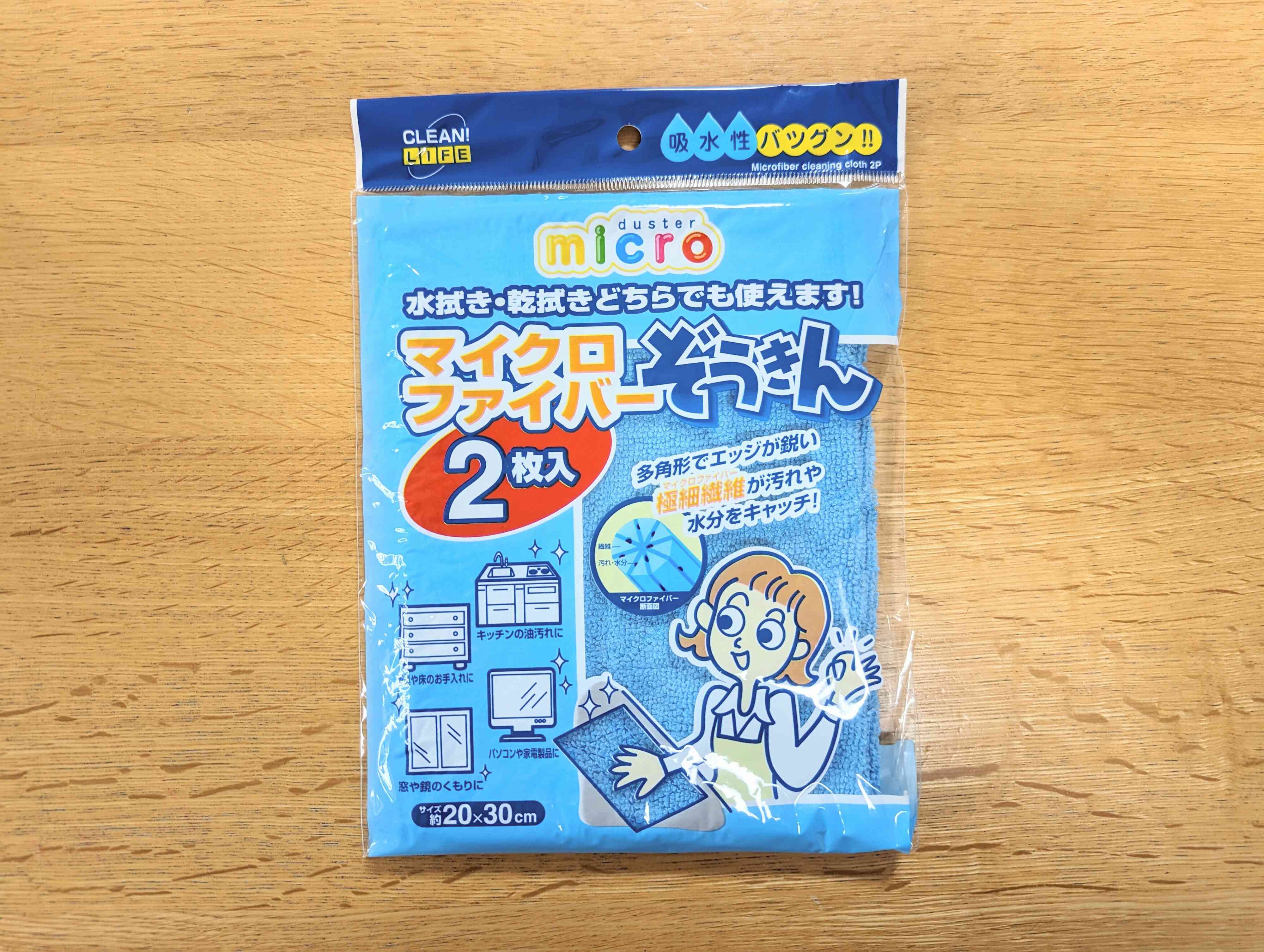 拭き掃除のお供は、汚れ落ちのいいマイクロファイバークロス。ぞうきん自体が汚れたら気軽に新しいものに取り替えたいから、100均を頼りにしています。