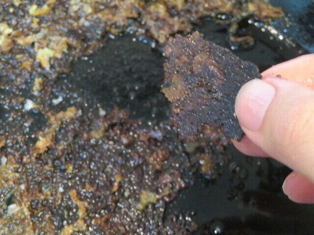 少し前にうっかり火を入れすぎて真っ黒にしてしまったことがあったのですが、しばらく待って表面をひっかいてみるとベリッとこげが板状にはがれて笑いました。