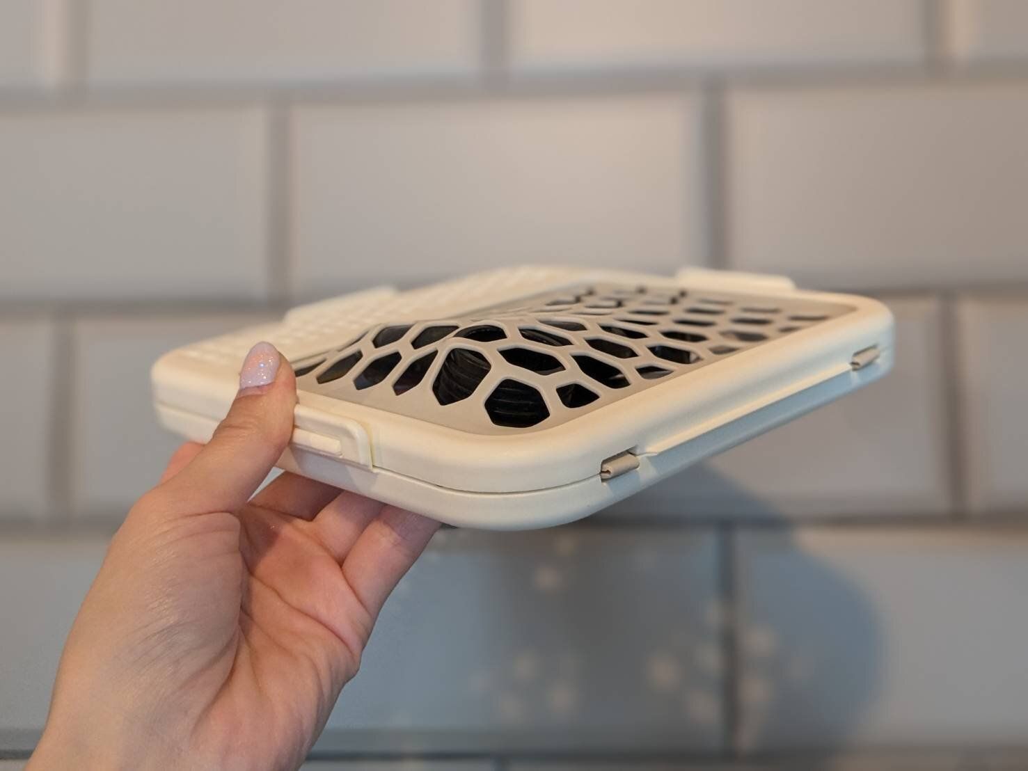 過去には100円ショップなどの類似品も試したことがありますが、この「シリコンネット」がとにかく優秀なんです!ビヨーンと自在に伸びるシリコンのおかげで、見た目よりもたくさんのモノを収めることができます。
