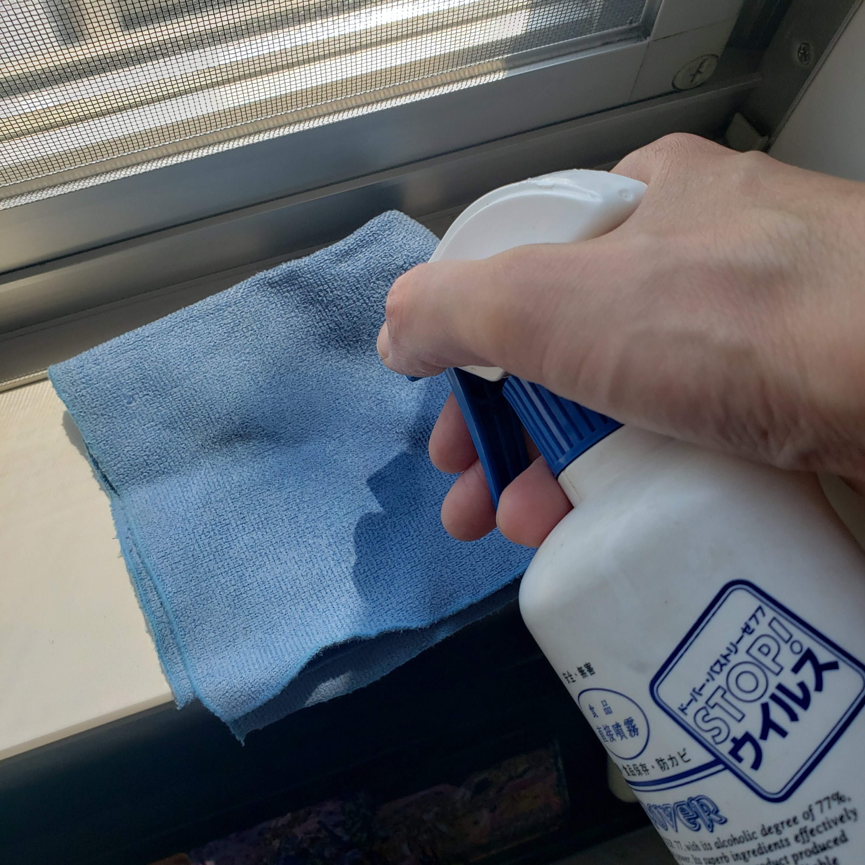更に余裕があれば、本体をパストリーゼなどのアルコール除菌スプレーで拭き取る。