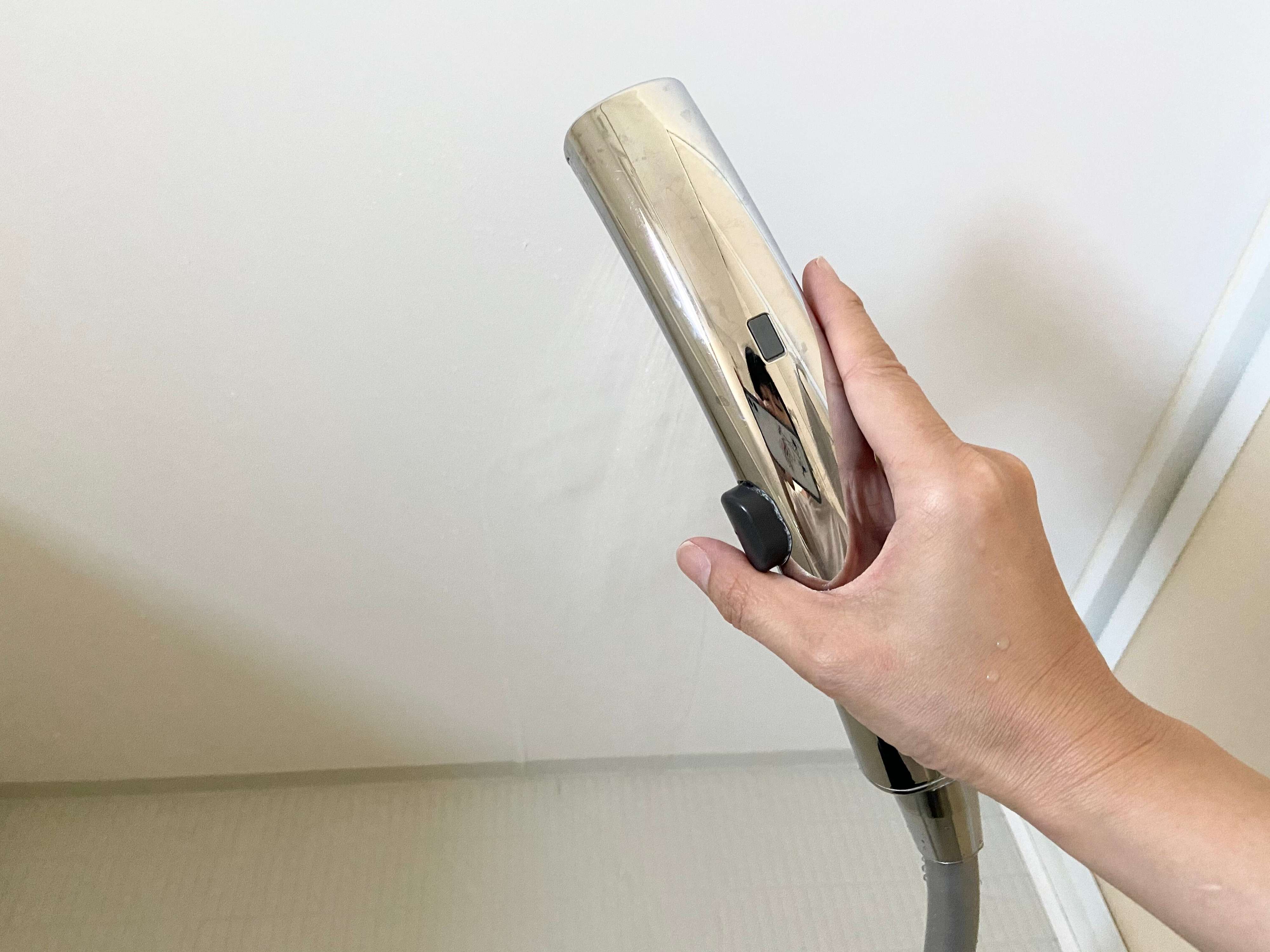 ポイント:カビ菌は50℃以上のお湯で死滅するので高温の方が良いのですが、掃除のためだけに温度設定を変えるというのはとっても手間なもの。効果は下がりますが、自分を洗うついでにシャワーをかける方が忘れが少なくてすみます!