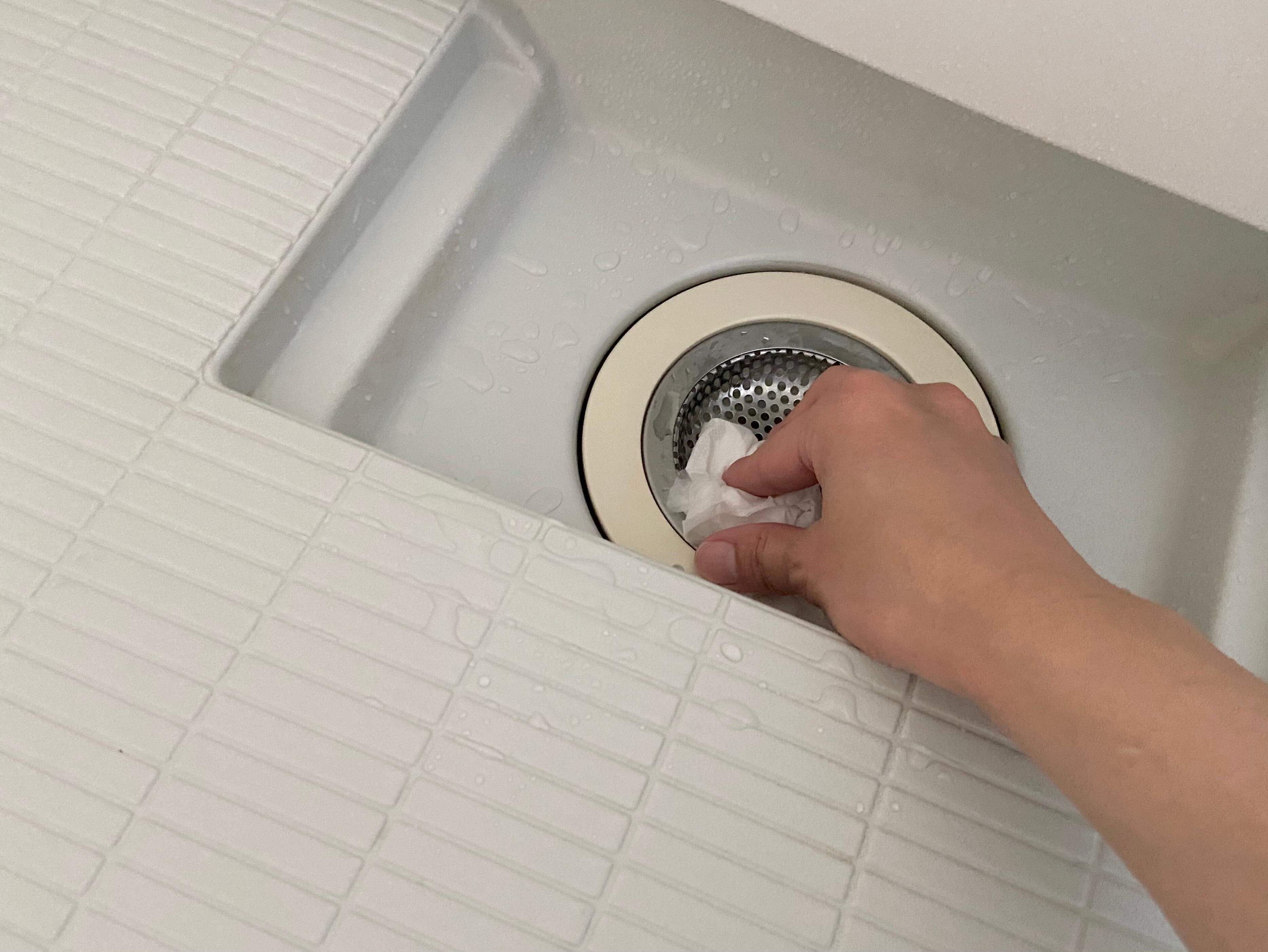 排水口の蓋を取り除き、髪の毛などのゴミを毎日ティッシュで取り除くようにしています。
