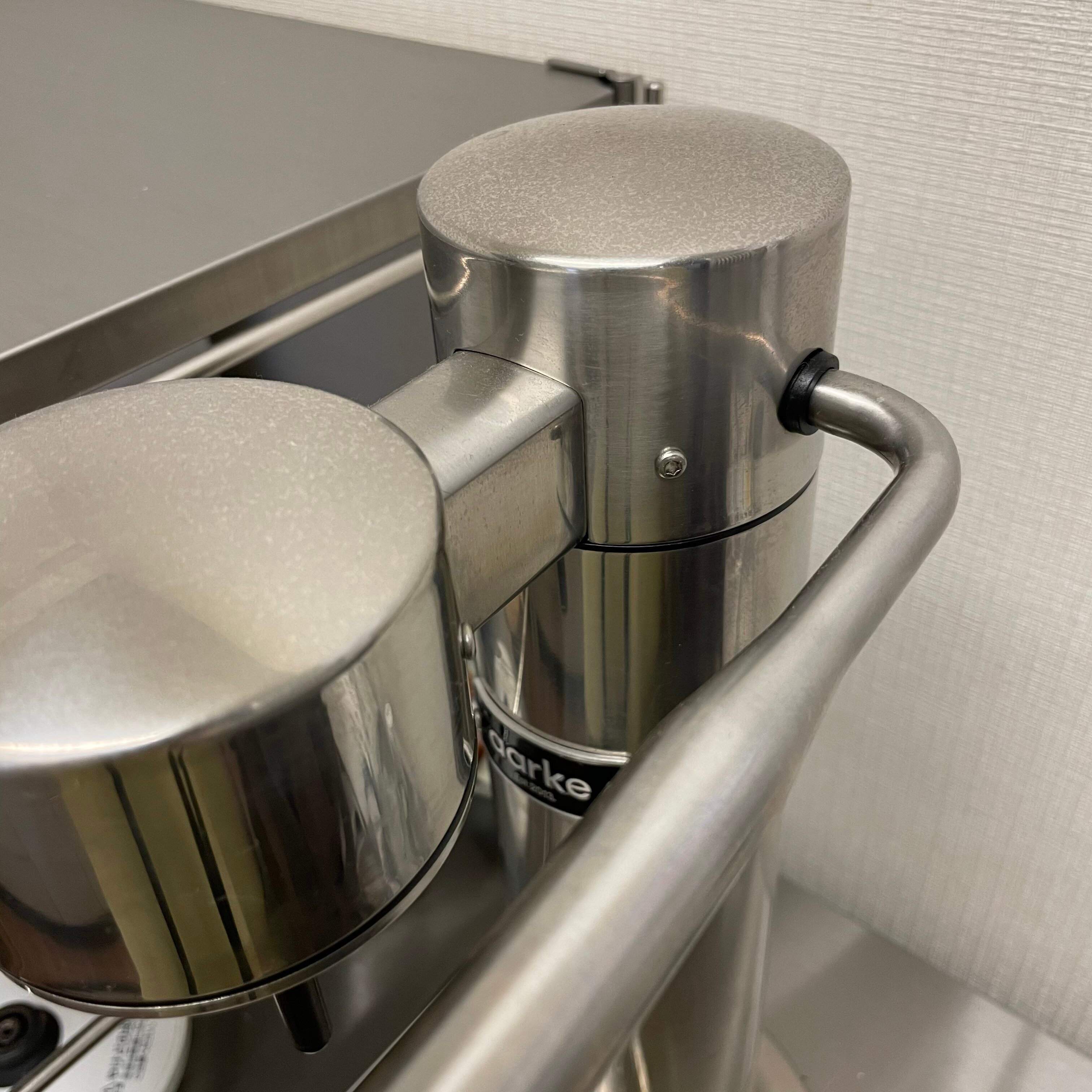 アルコールスプレーをかけて吹くと、汚れがみるみると落ち、美しいステンレスの光が戻りました。