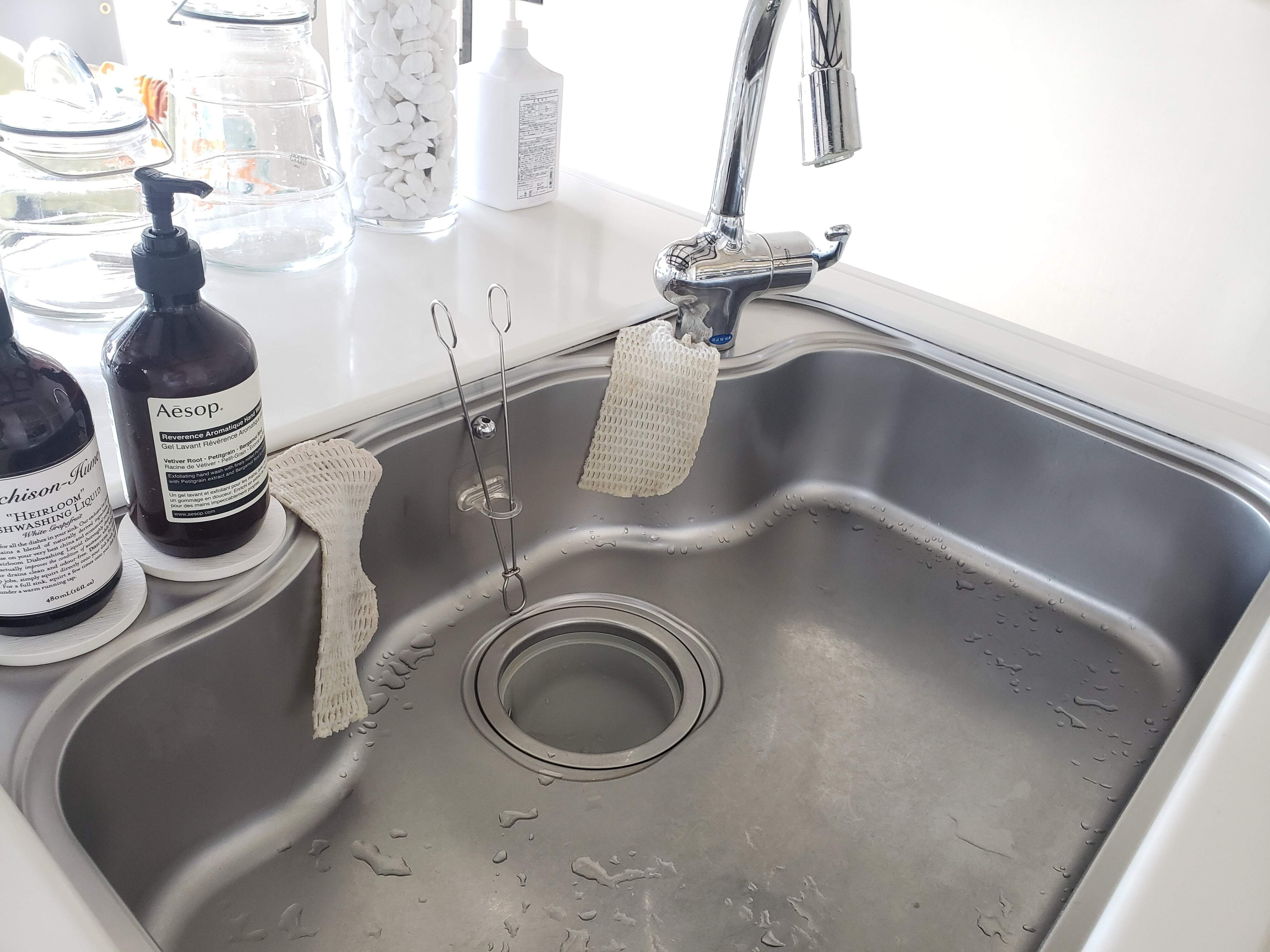 100均に至ってはすぐにボロボロになりますし、お高めのスポンジはなかなかボロボロにならず良かったのですが、ご縁があって2年ほど前に知った、そうじの神様のアミタワシ。こちらに変えたところ、とっても使いやすくて今ではそれ以外考えられないくらいとなりました!