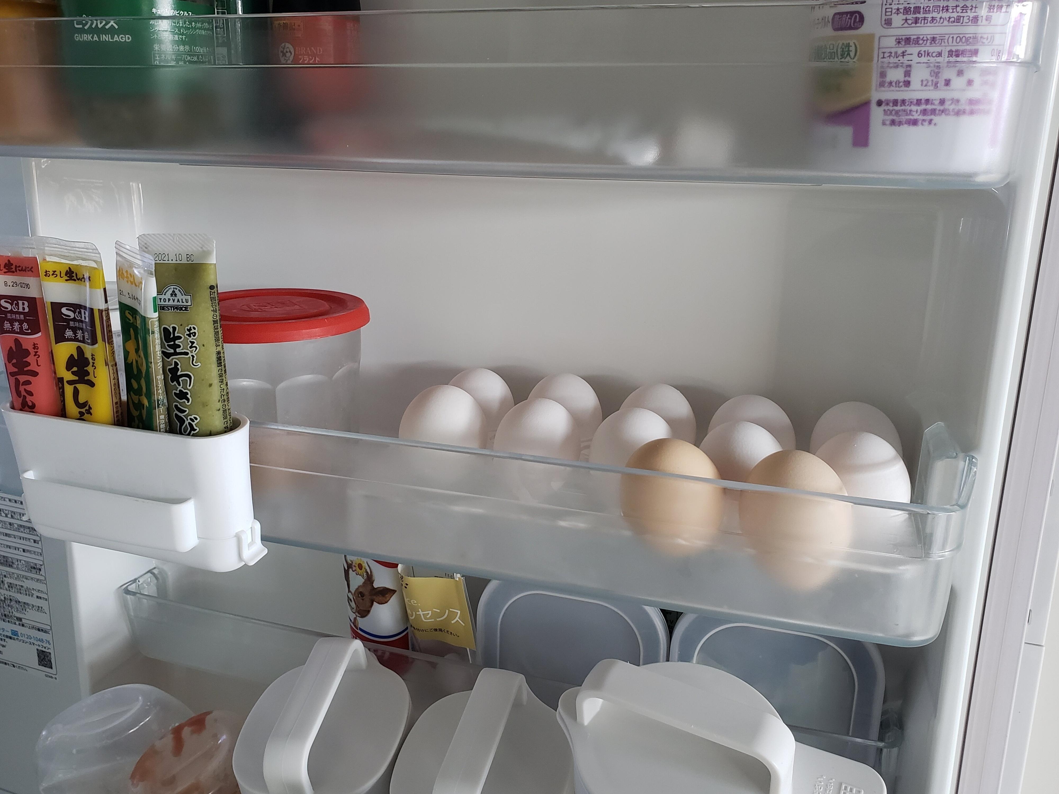 だいたいの冷蔵庫は、最初ドアポケットに卵ケースが設置されているかと思います。