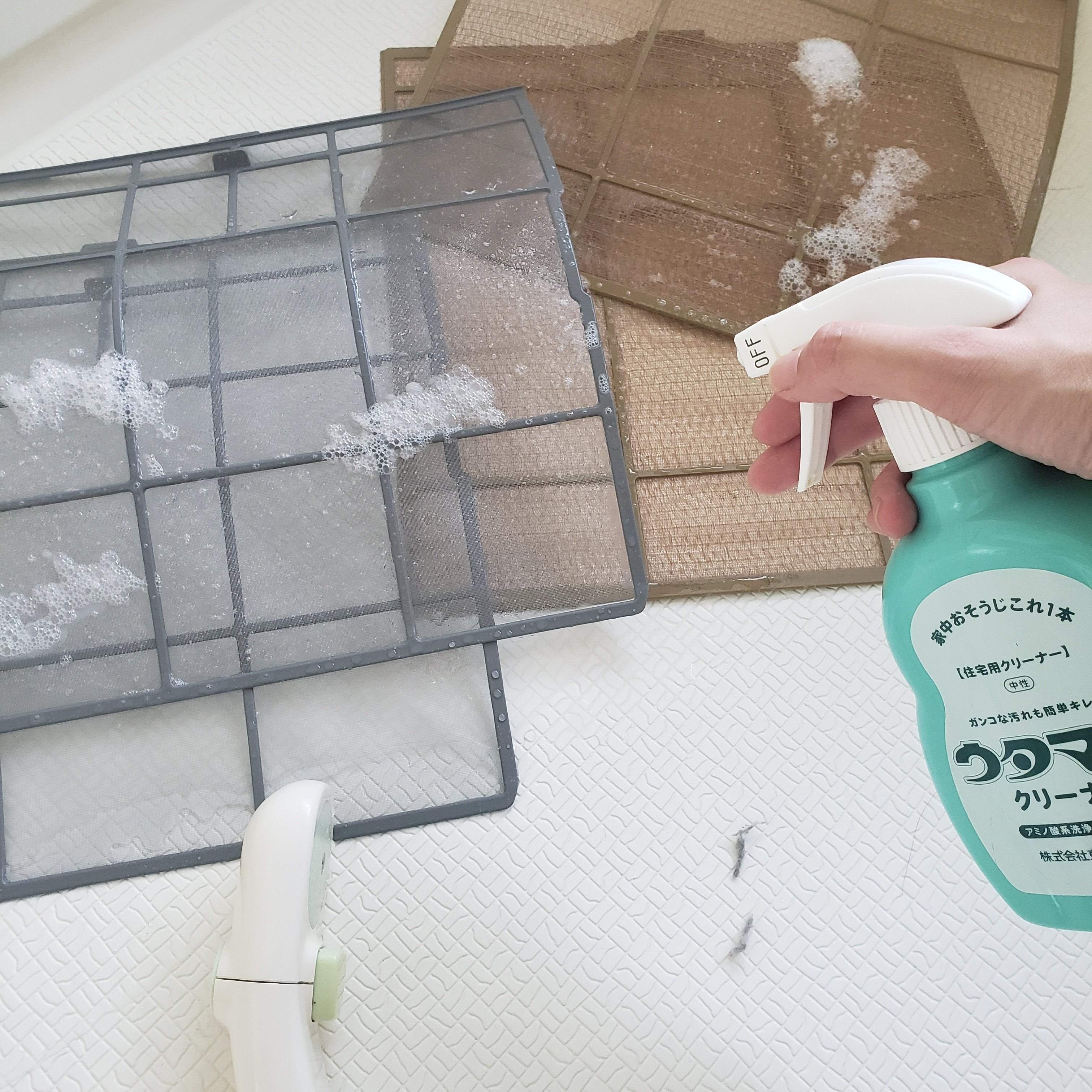 フィルターを軽く濡らしてから、ウタマロクリーナーを吹きかけます。