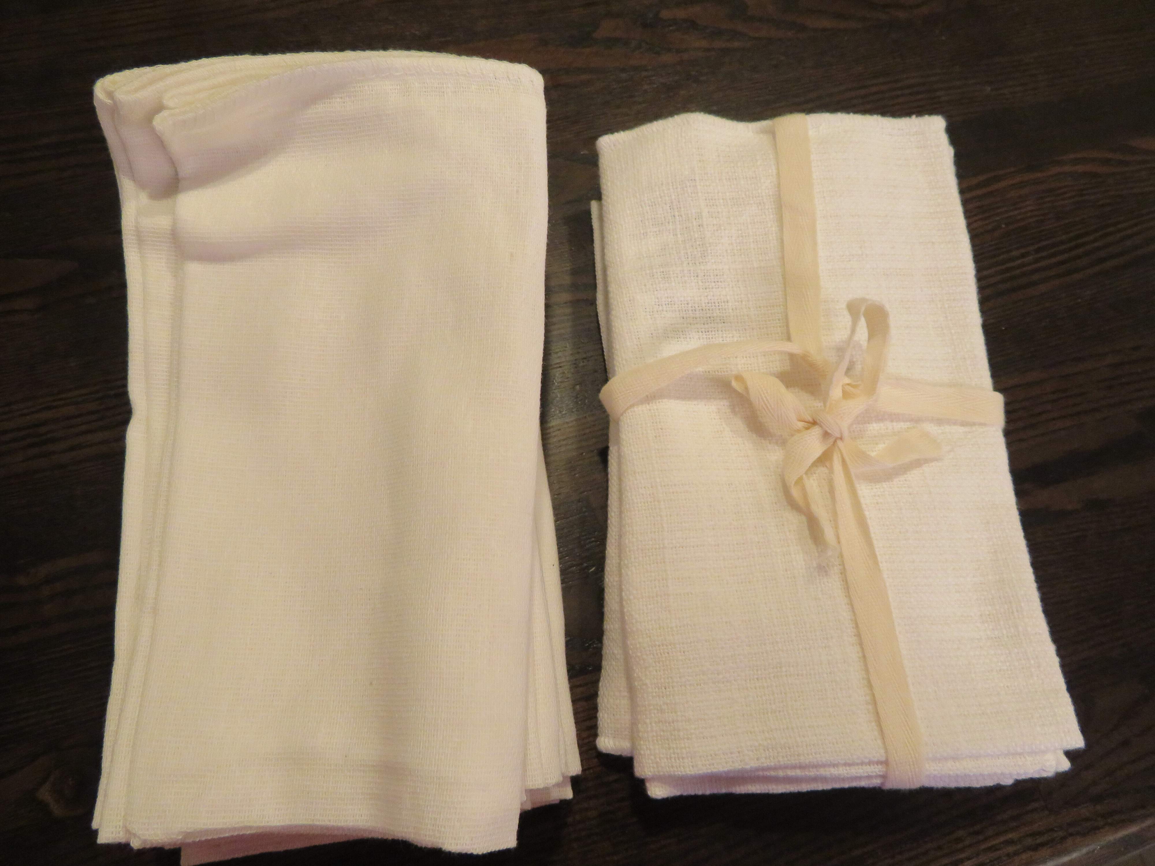 左側が「落ちワタ混ふきん12枚組」(消費税込499円)右側が「インド綿大判ふきん・2枚組」(消費税込499円)です。
