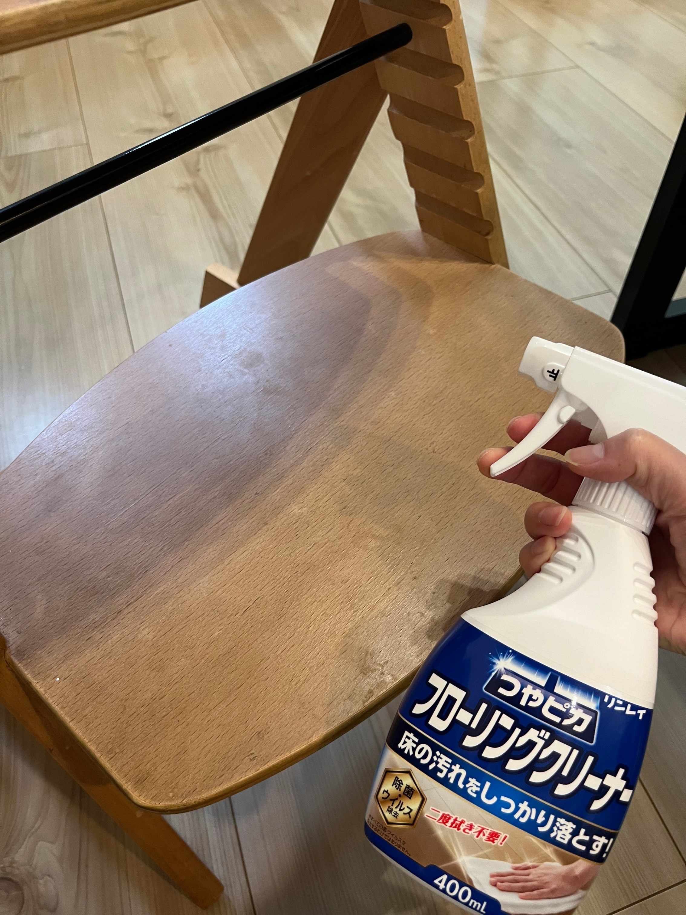 幼児用の椅子の足の部分は床並みに(いやそれ以上かも)に汚れていましたが、つやピカフリーリングクリーナーのおかげでとてもきれいになって大満足!