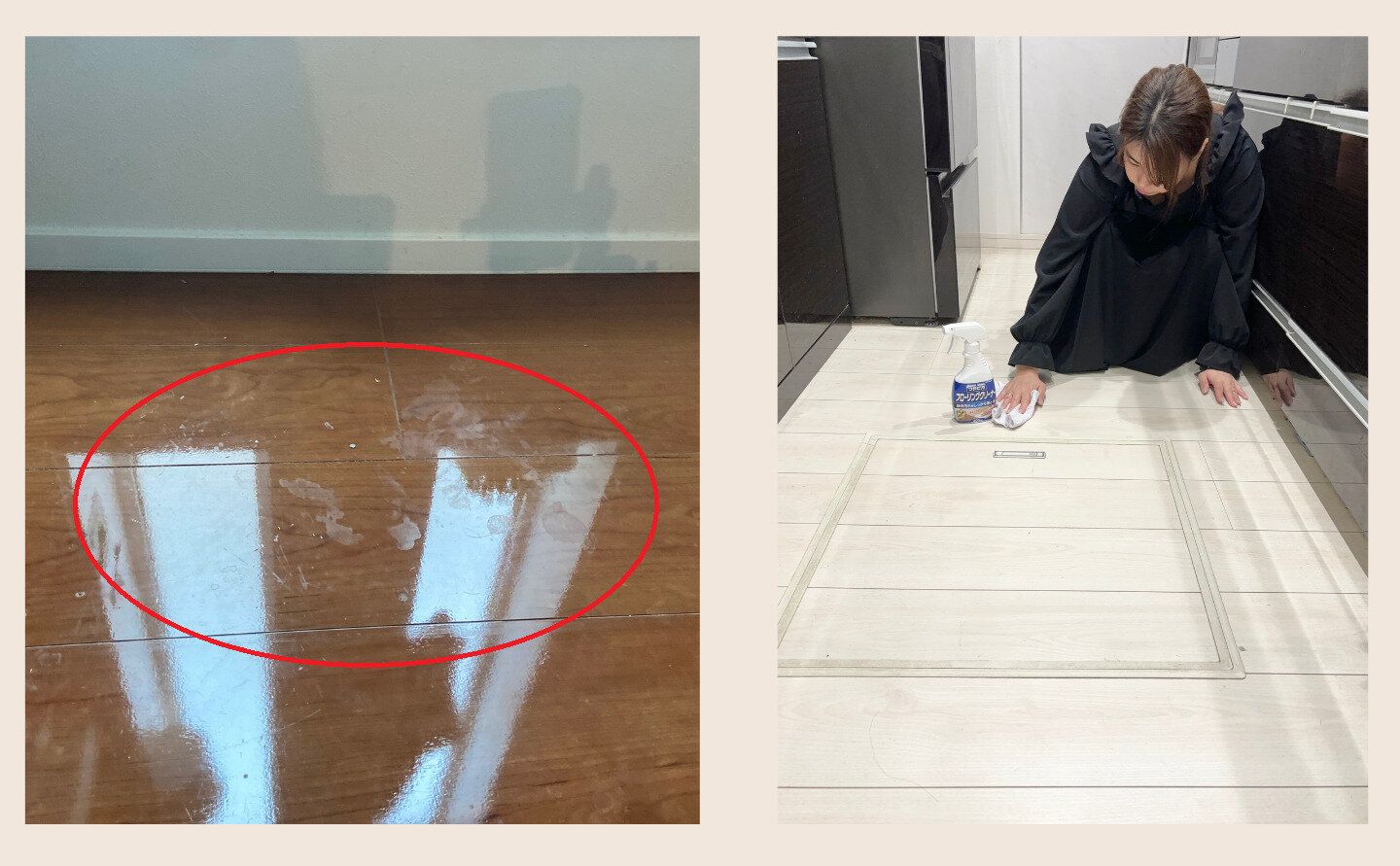 こまめに掃除機をかけてほこりなどを取り除いていても、後回しにしがちなのがフローリングの拭き掃除。サンキュ!公式インスタグラマーのすみさんは、「調理ではねた油汚れや、食べこぼしでベタベタ床が汚れるのが悩み」と話してくれました。
