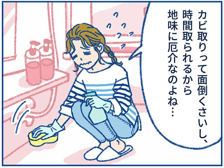 カビって、スポンジでこする程度じゃなかなか取れないから、本当に厄介ですよね。落としても落としても、すぐにまた生えてきますし…。