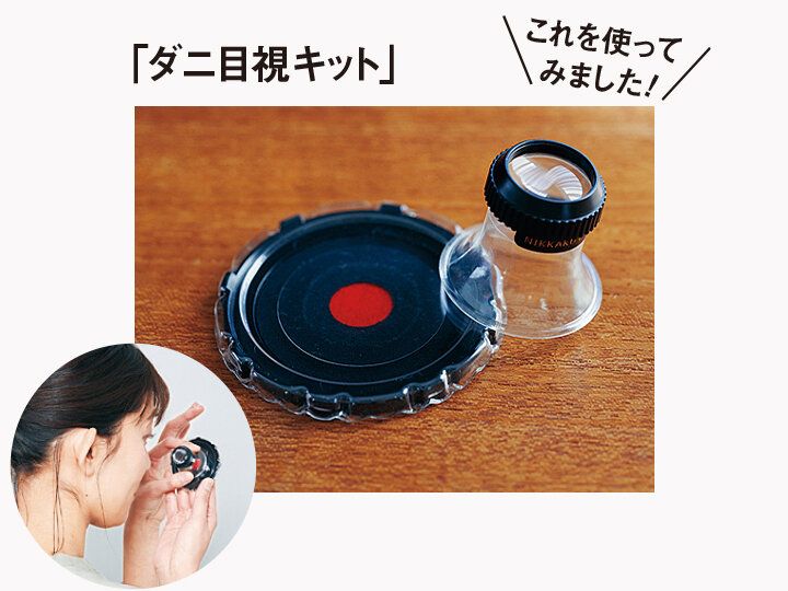 ベッドやソファ、カーペットなど、おうちの中で気になる場所に潜むダニを発見できるグッズ。ダニ誘引剤入りの本体を設置し、約2週間後に付属のルーペで確認します。専用アプリの「ダニAI判定」と連動させれば、ダニの数や種類もわかる!