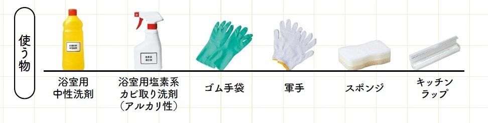※洗剤を使う掃除では、ゴム手袋の使用をおすすめします。軍手を使う場合、ゴム手袋の上から軍手をはめると手荒れが防げます。