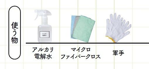 ※洗剤を使う掃除では、ゴム手袋の使用をおすすめします。軍手を使う場合、ゴム手袋の上から軍手をはめると手荒れが防げます。