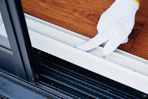 • 4 軍手でサッシを拭く