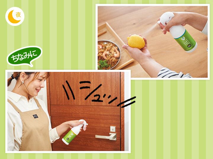 「P’s GUARDキッチンスプレー」は食材にも直接スプレーできるからとっても便利! 皮つきのまま料理に添えるレモンなどに使っています。