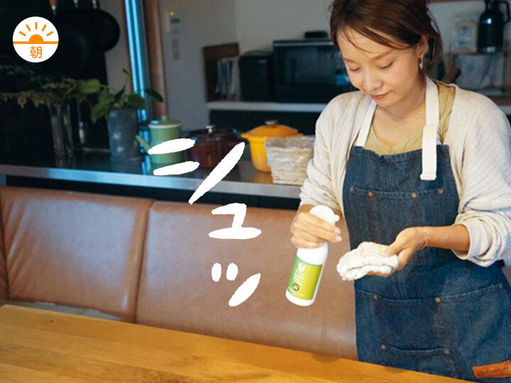 見逃しがちなテーブルとふきんは朝一でケア。下の子が食べこぼしを拾って口に入れてもテーブルを除菌しておけば安心。
